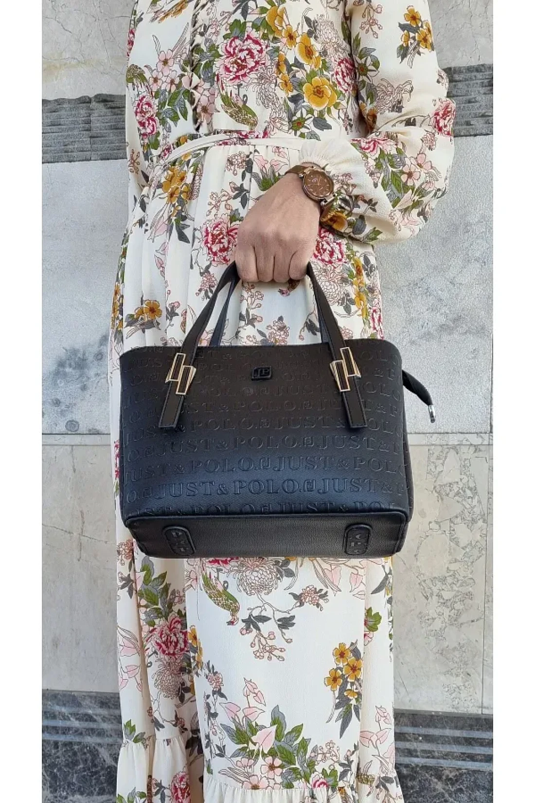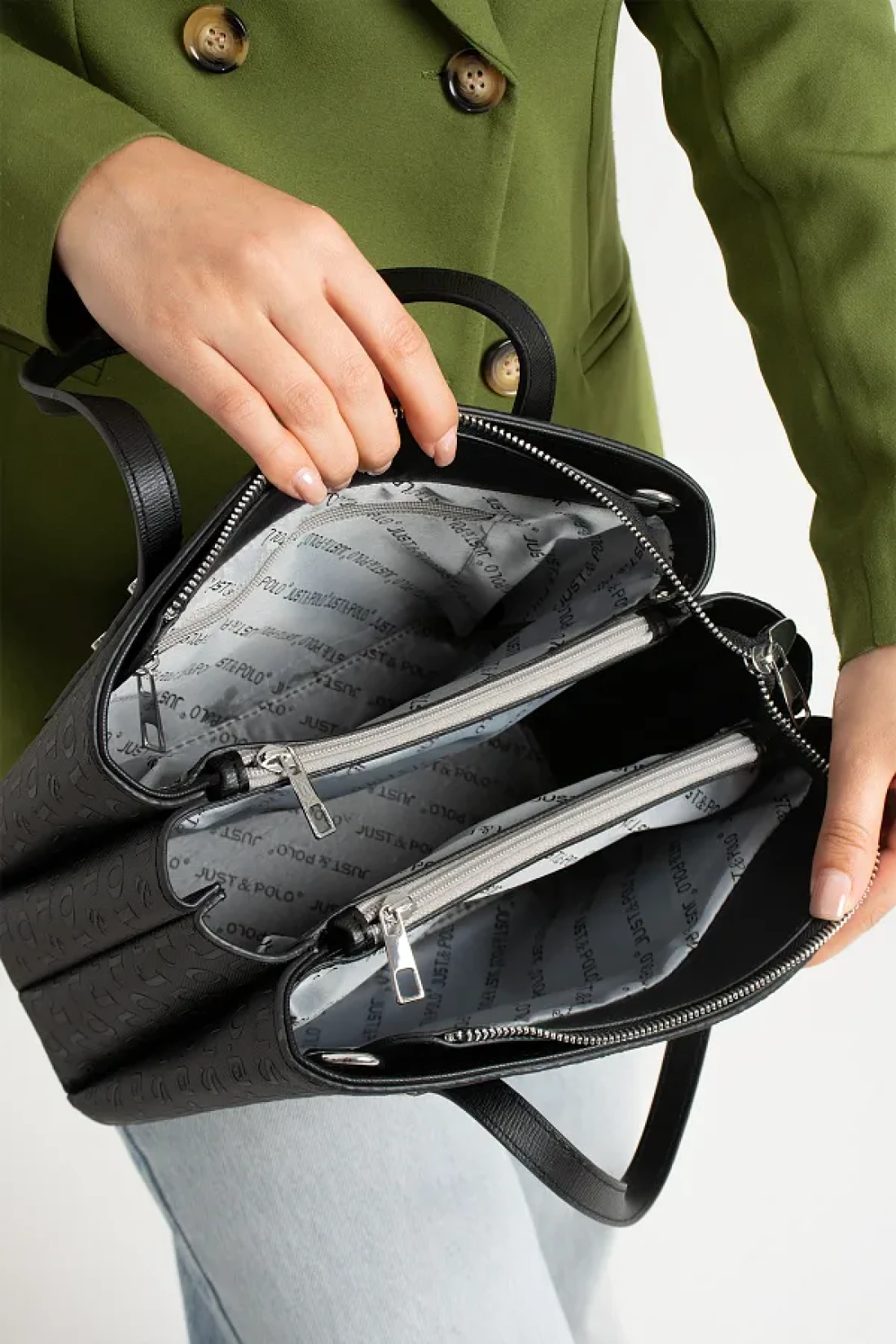 Just Polo Women's Embossed Printed Zipper Closure Shoulder and Hand Bag Long Adjustable