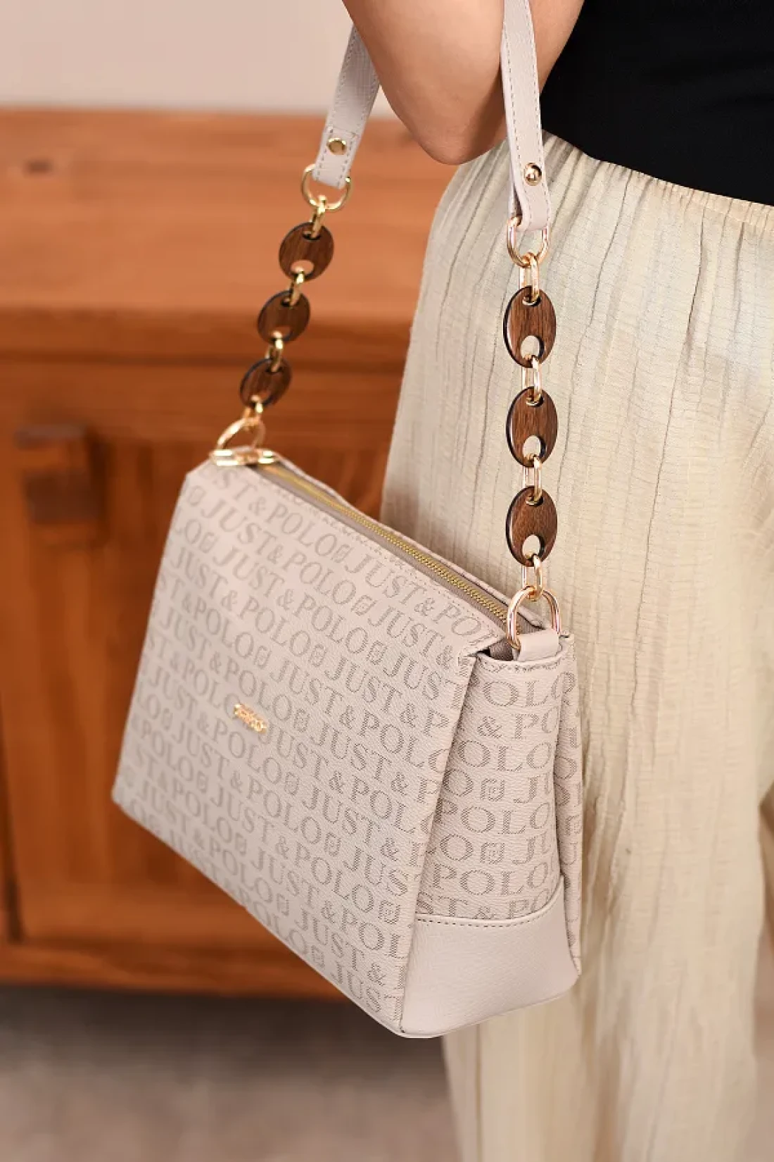 Just Polo Non-Tarnish Metal and Bone Strap Hand and Shoulder Bag - 2082