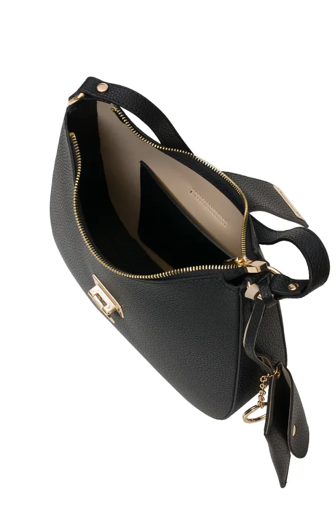 it has a phone holder. It is a lightweight unlined bag. Handle length: 49 cm. Mouth closure type: zipper