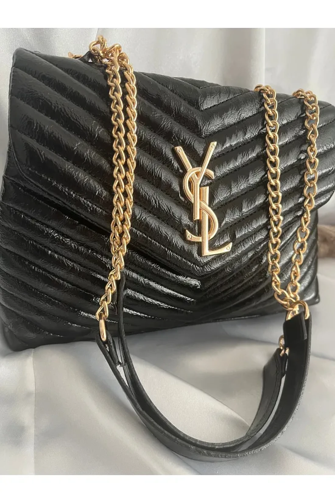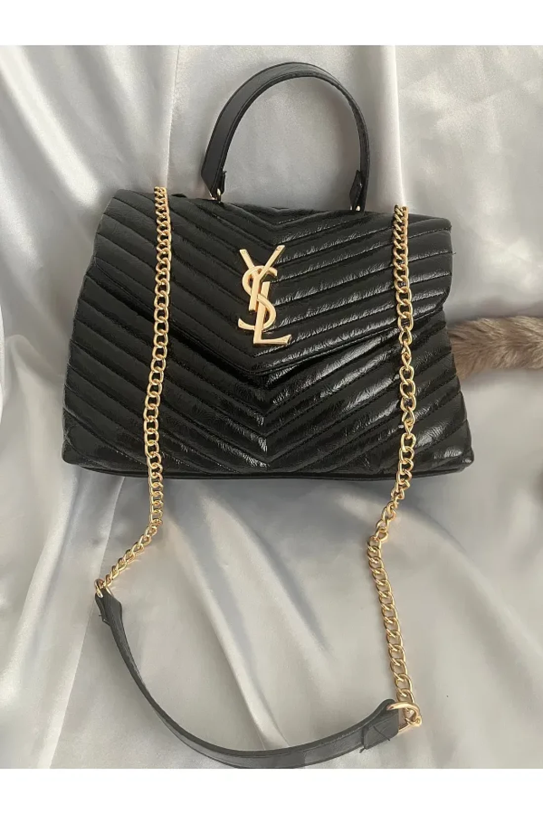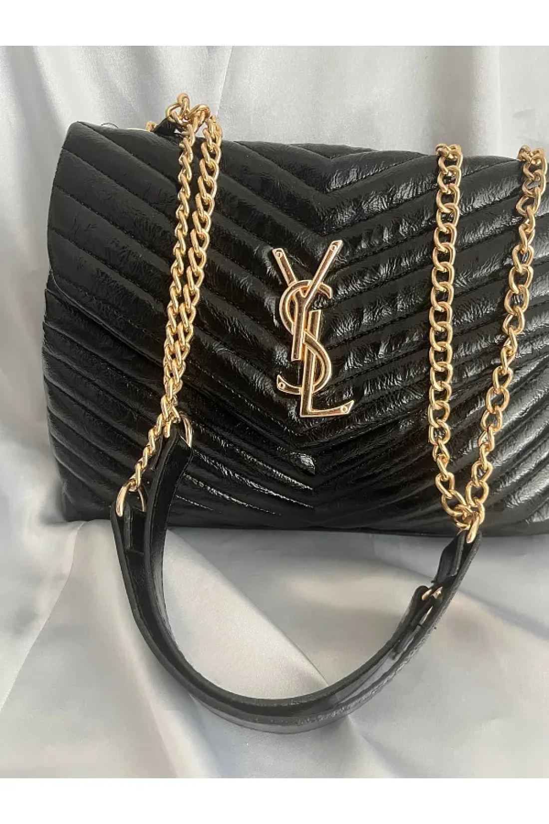 ÇANTA Gold Detail Patent Leather Stylish Women's Handbag