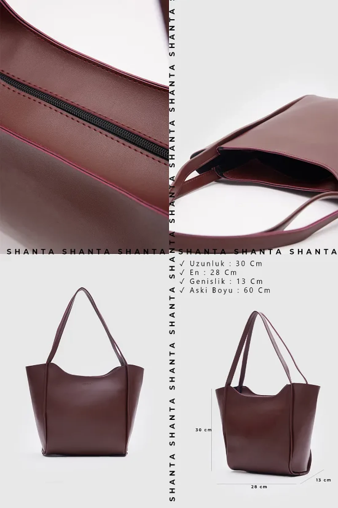 Shanta Claret Red C04 Single Compartment Zipper Closure Faux Leather Daily Women's Hand and Shoulder Bag U:30 E:28 W:13