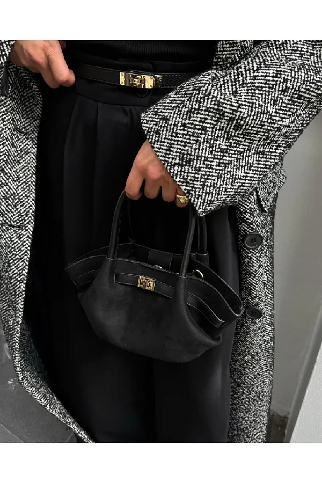 NBİBAGS Black Mini Nubuck Bag - Belt Detailed