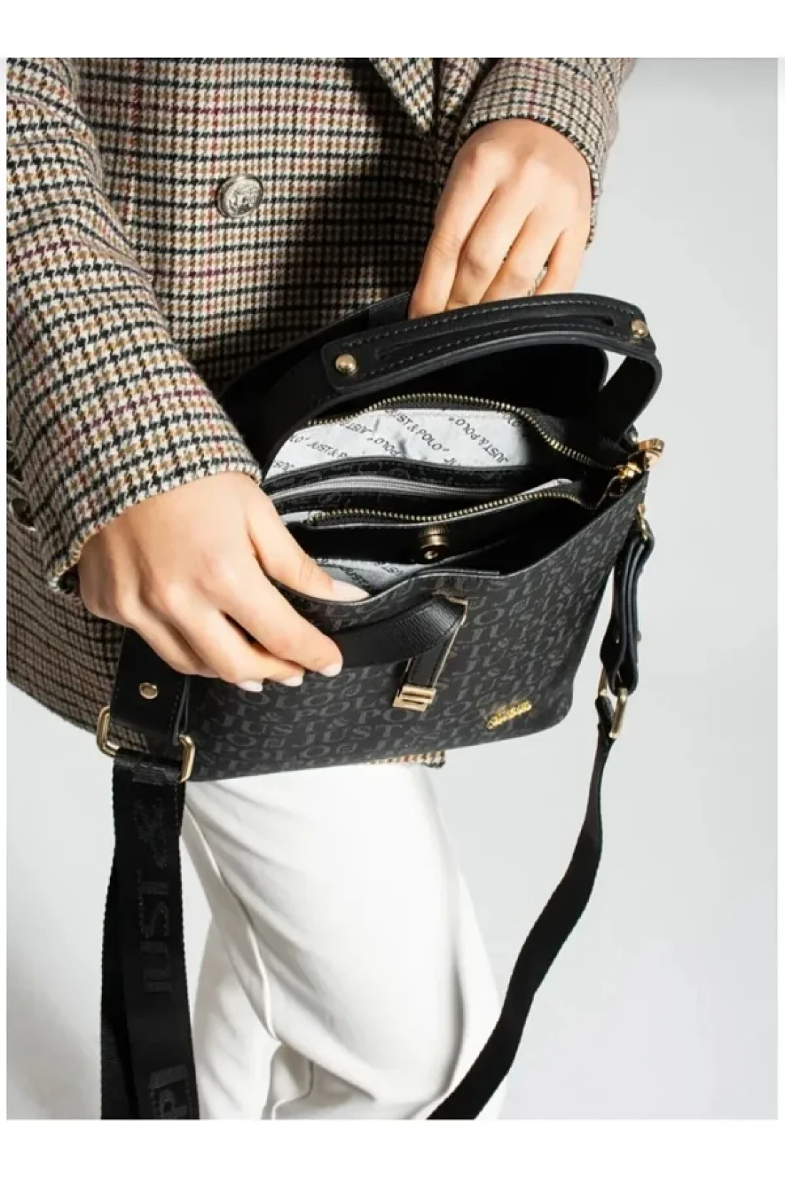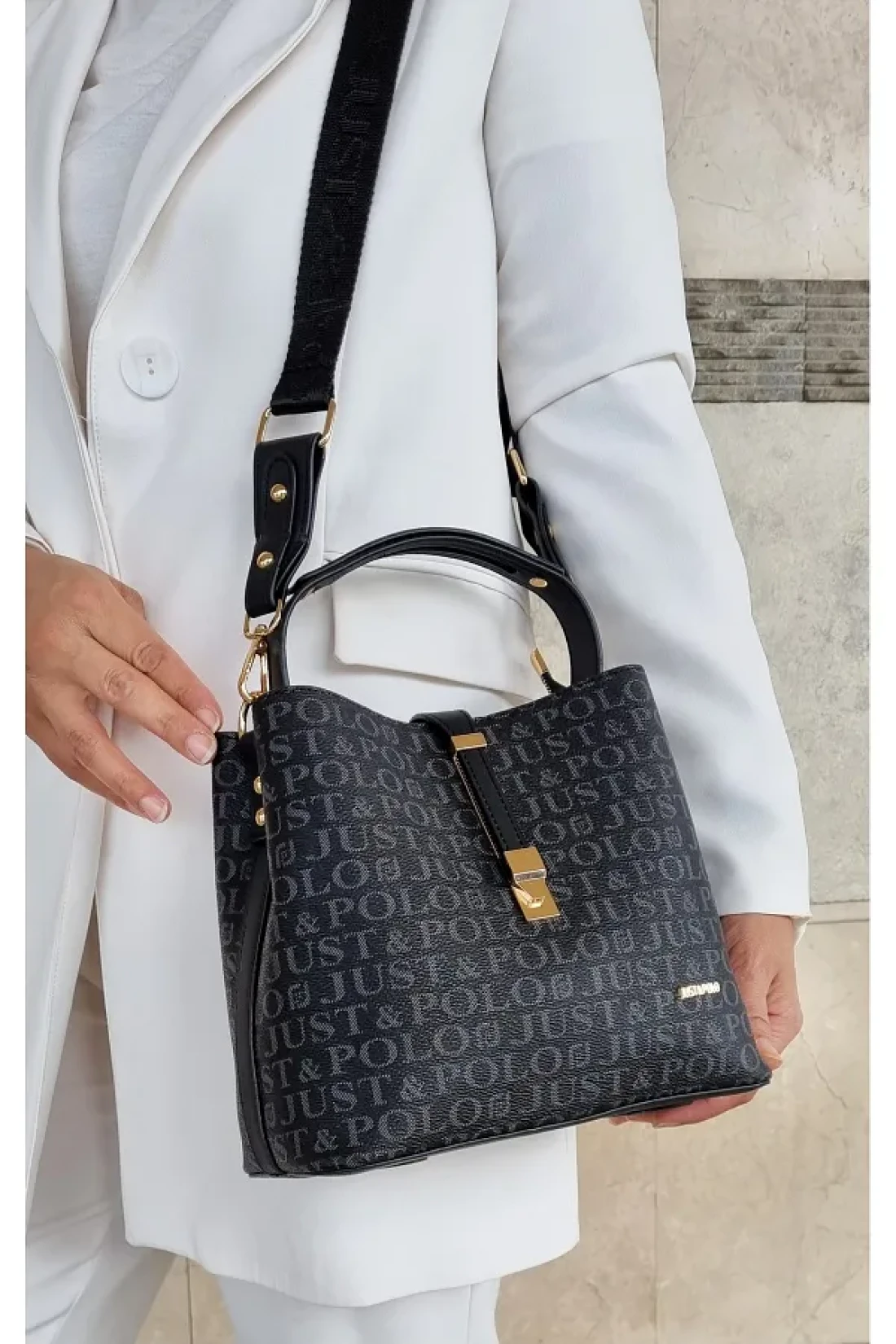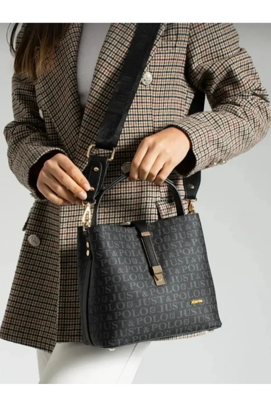 Just Polo Women's Black Hand and Shoulder Bag TM1165 2055