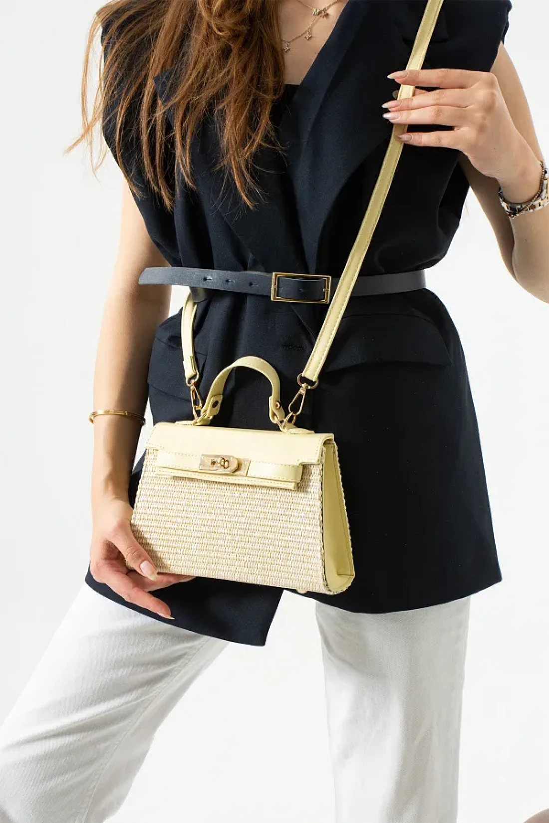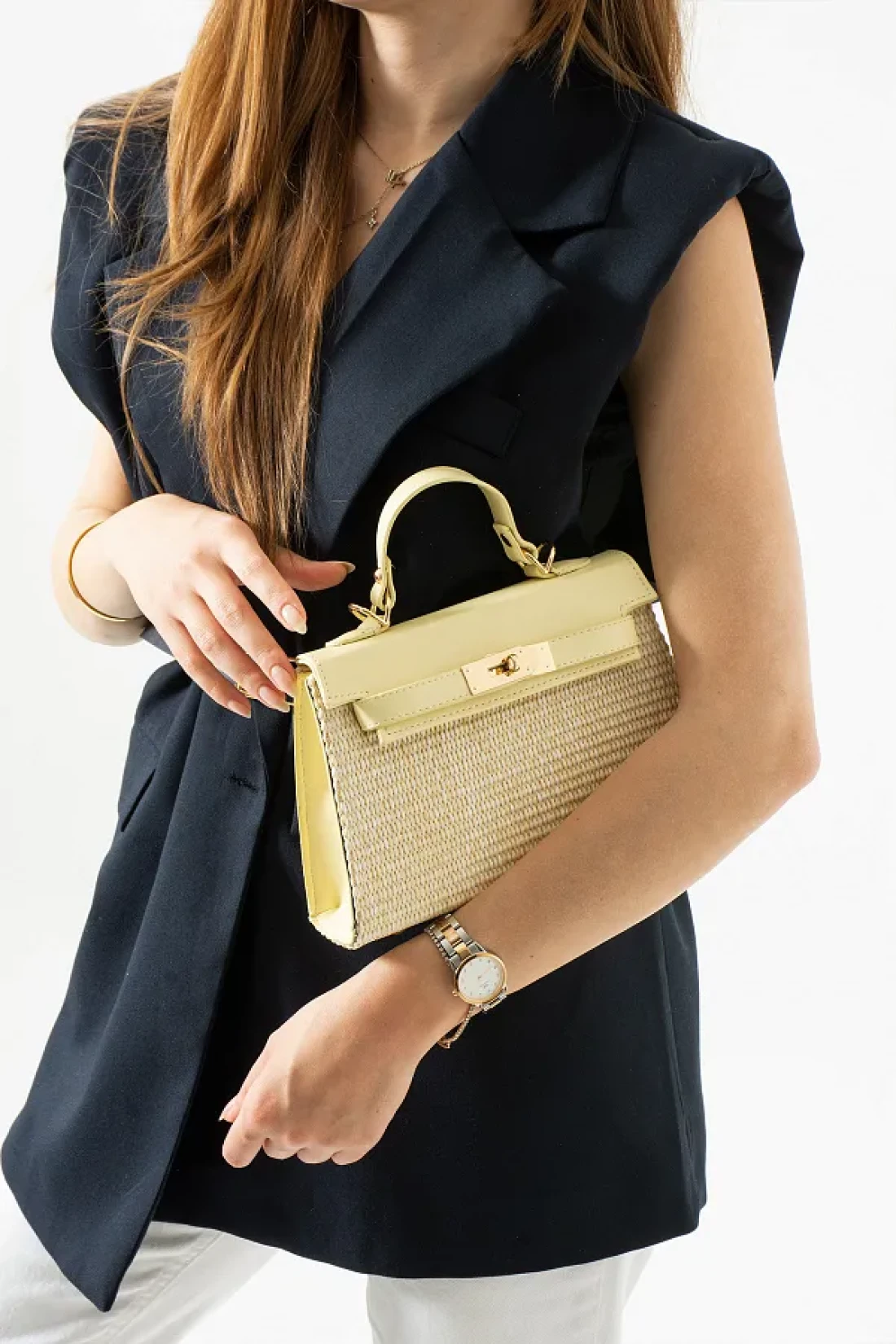 Night Vienn Model Wicker Yellow Women's Hand and Shoulder Bag