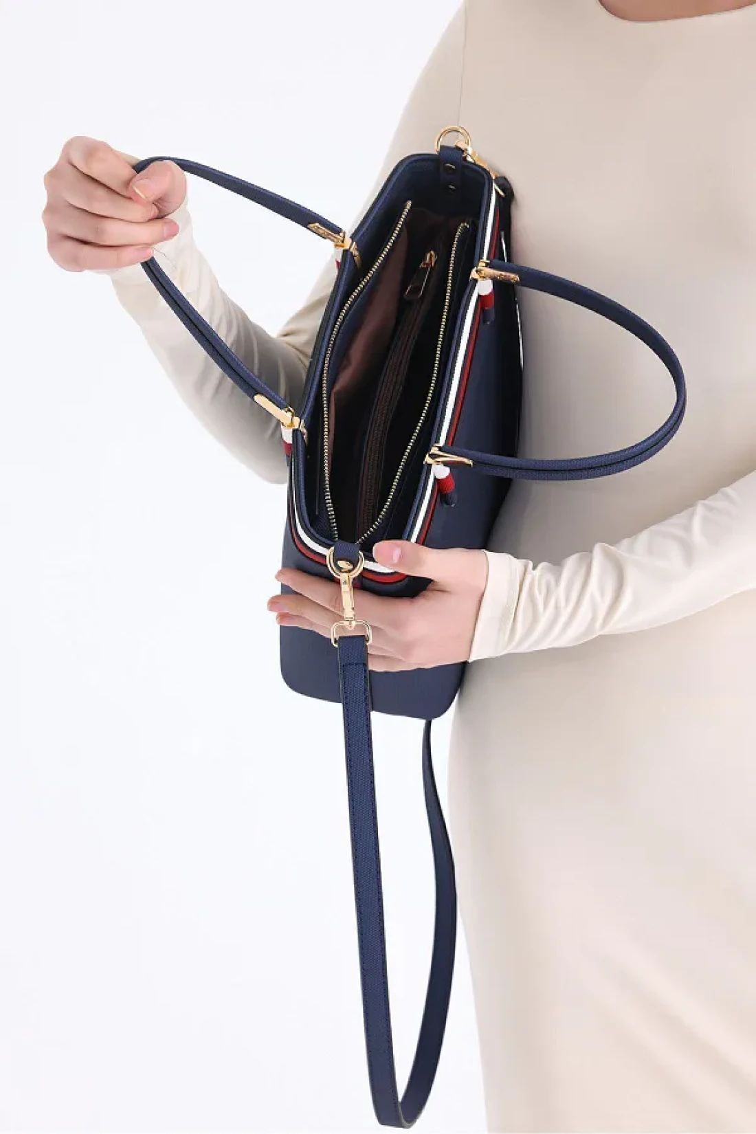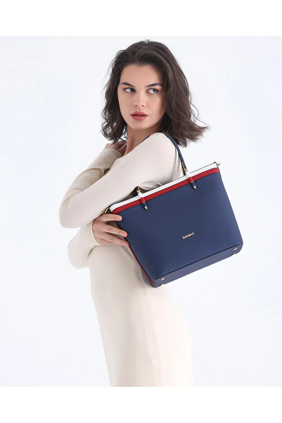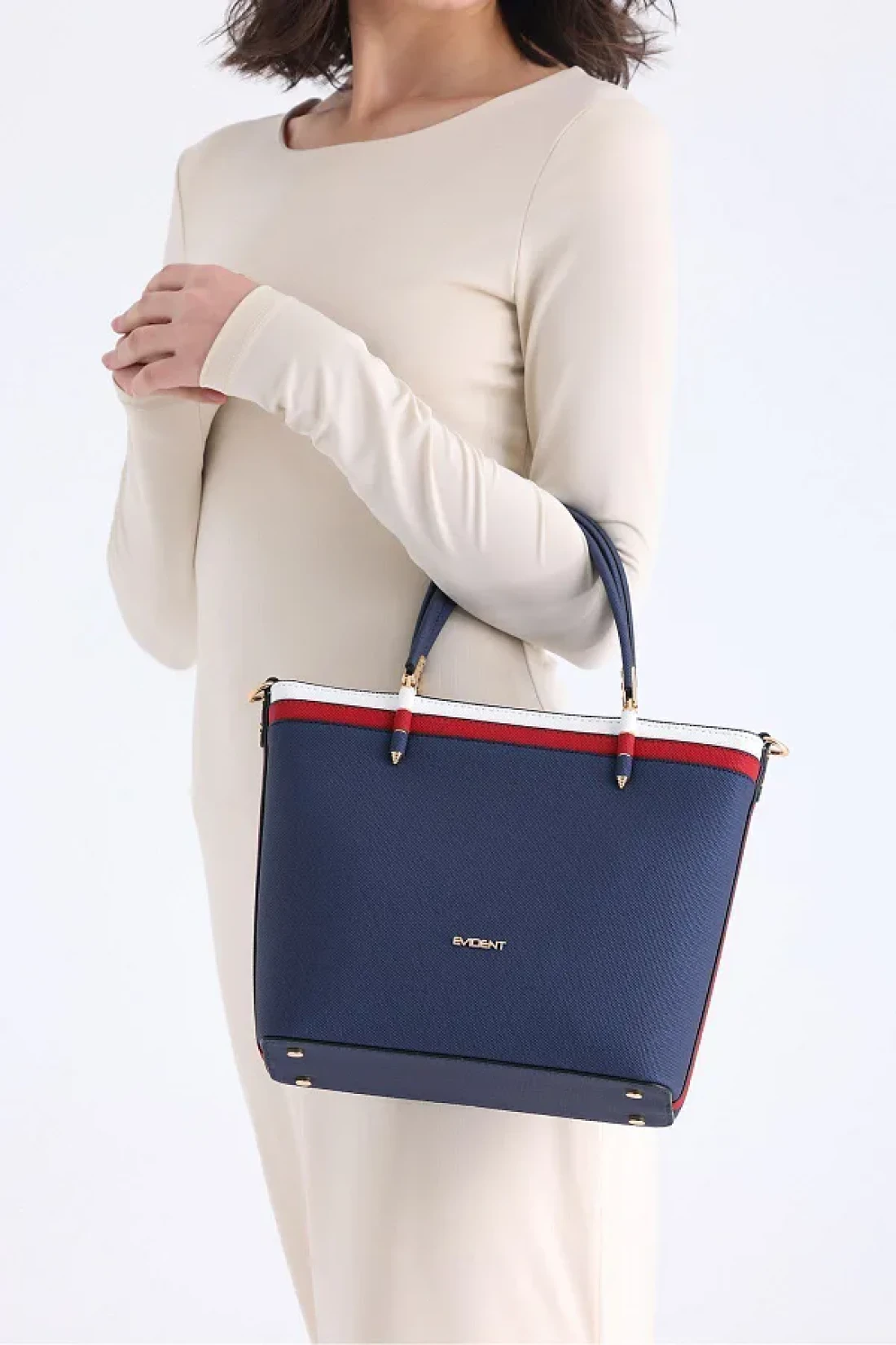 Evident Color Blocked Bucket Model Navy Blue Hand and Shoulder Women's Bag