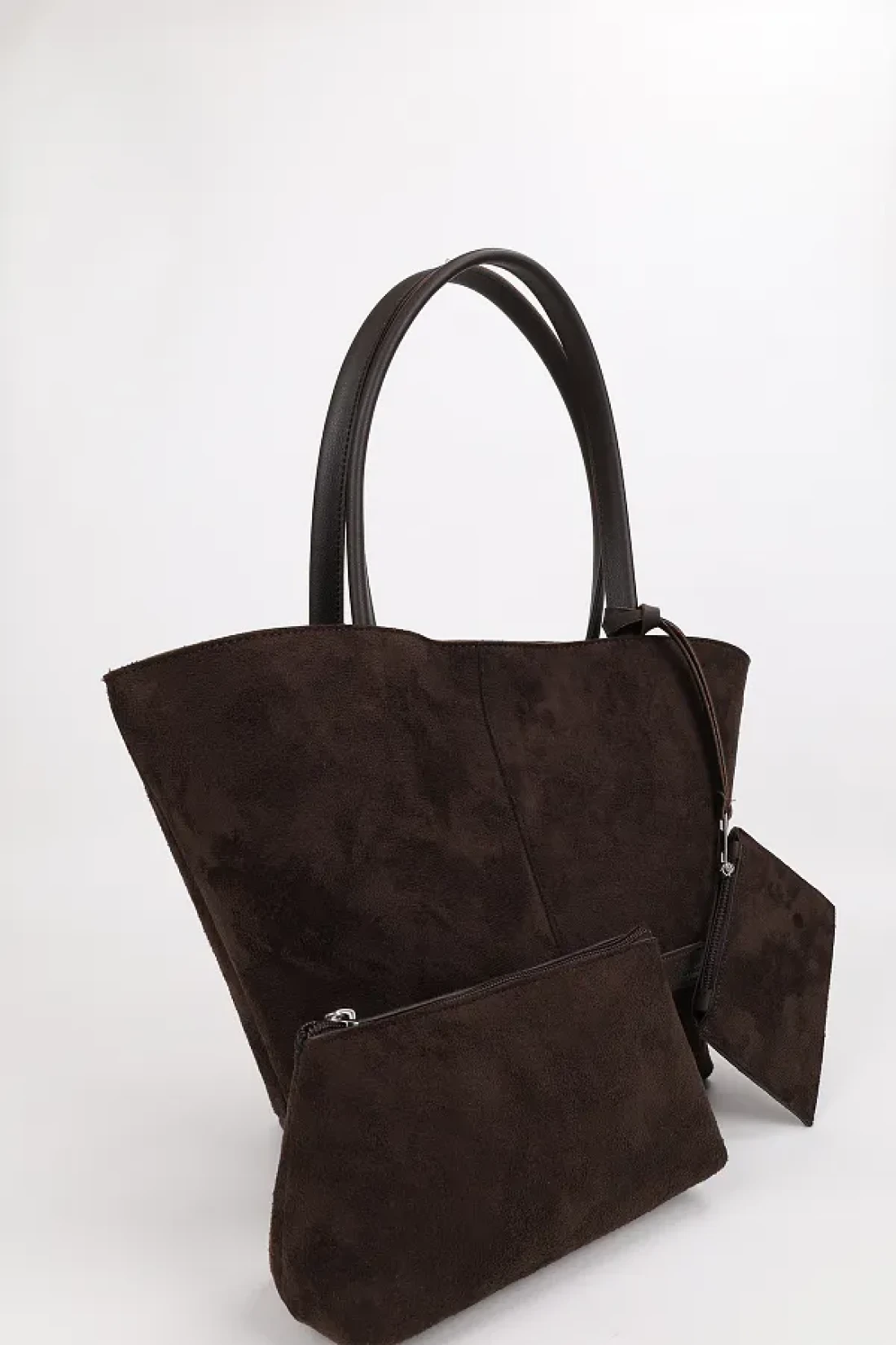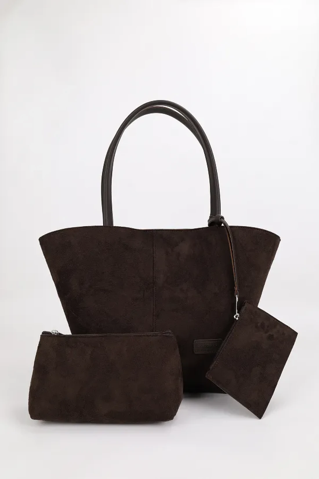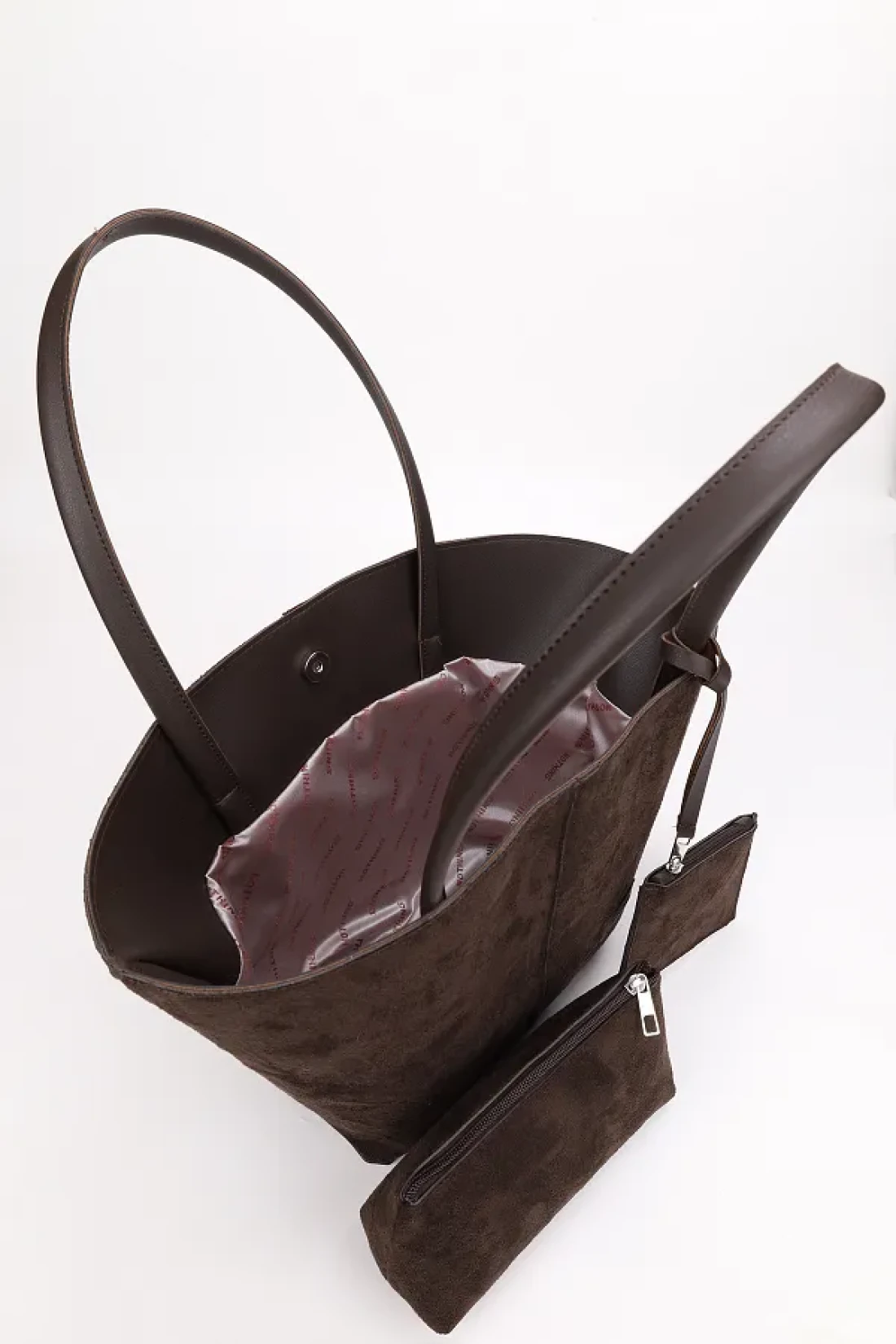 NOTHING Bitter Brown Suede Women's Bag - with Wallet, Makeup Bag, Lined, Large Size Hand and Shoulder Bag, Rosa