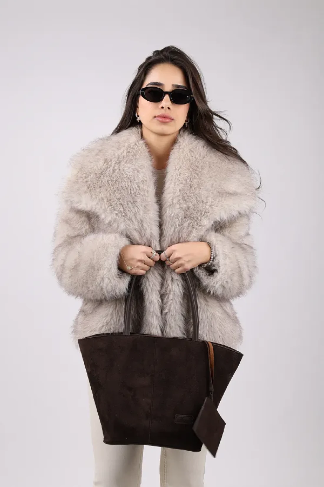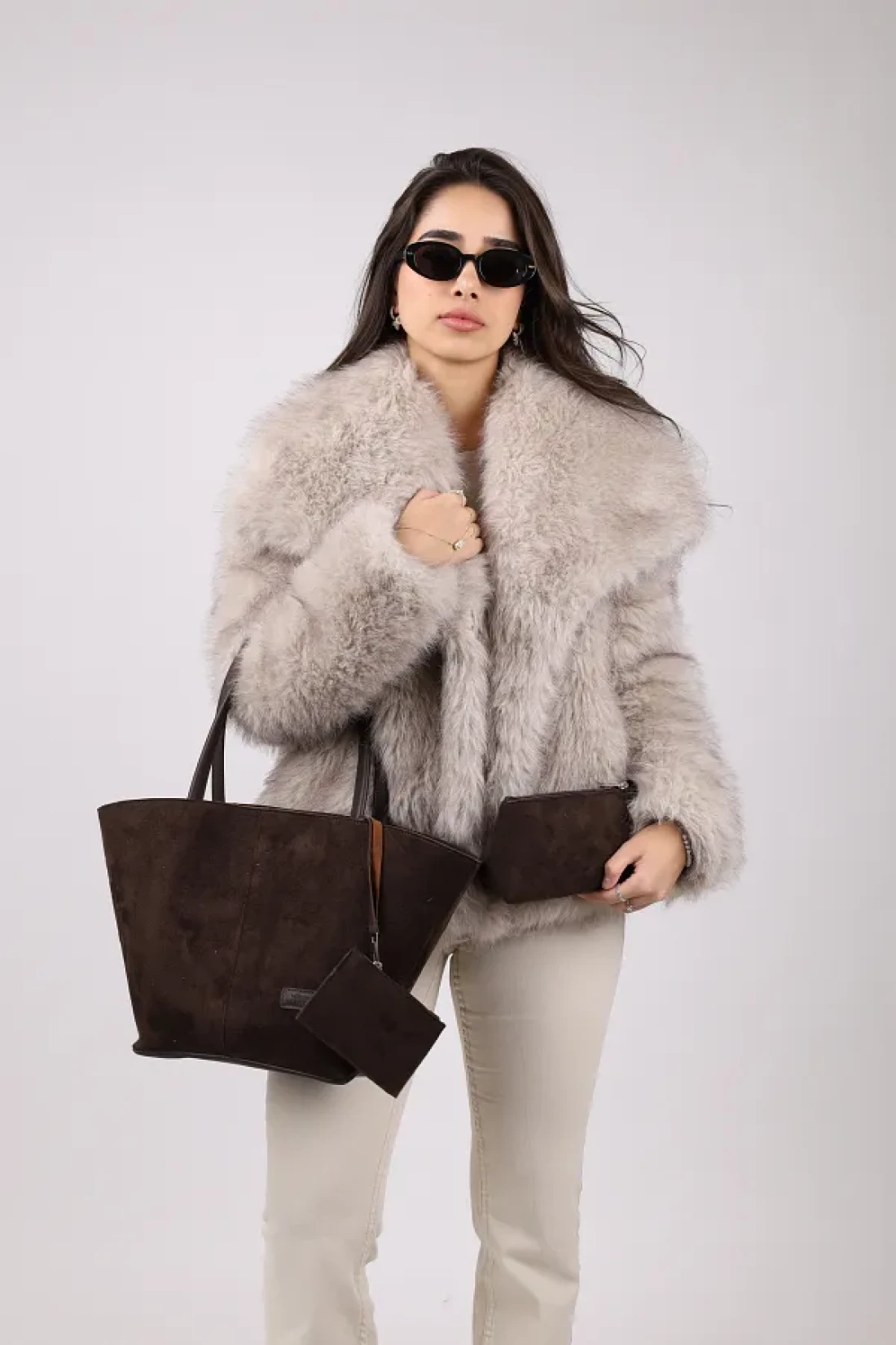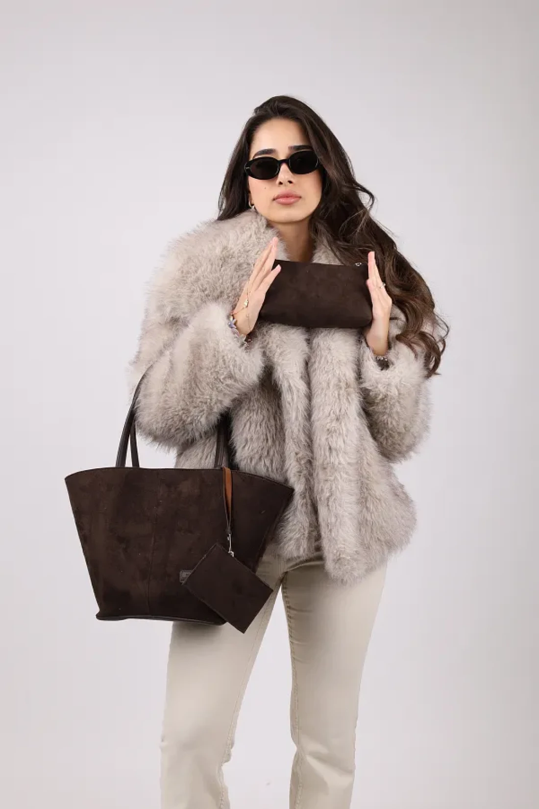 NOTHING Bitter Brown Suede Women's Bag - with Wallet, Makeup Bag, Lined, Large Size Hand and Shoulder Bag, Rosa