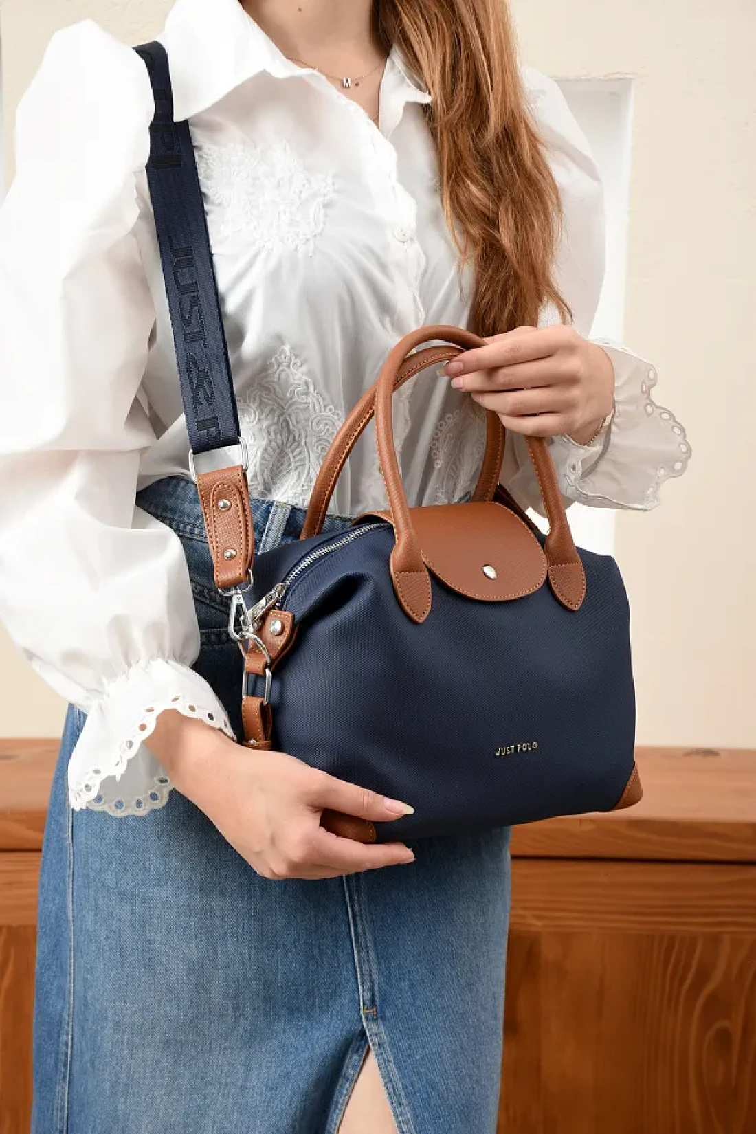 Just Polo Women's Wide Shoulder Bag with Shoulder Strap