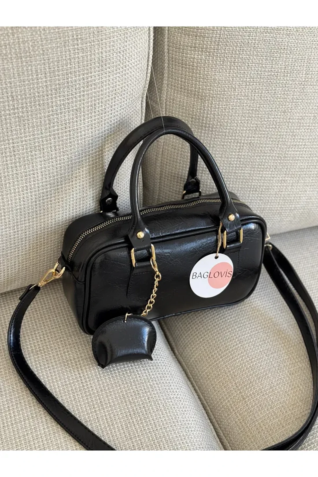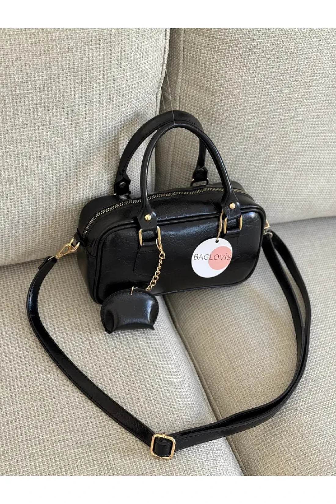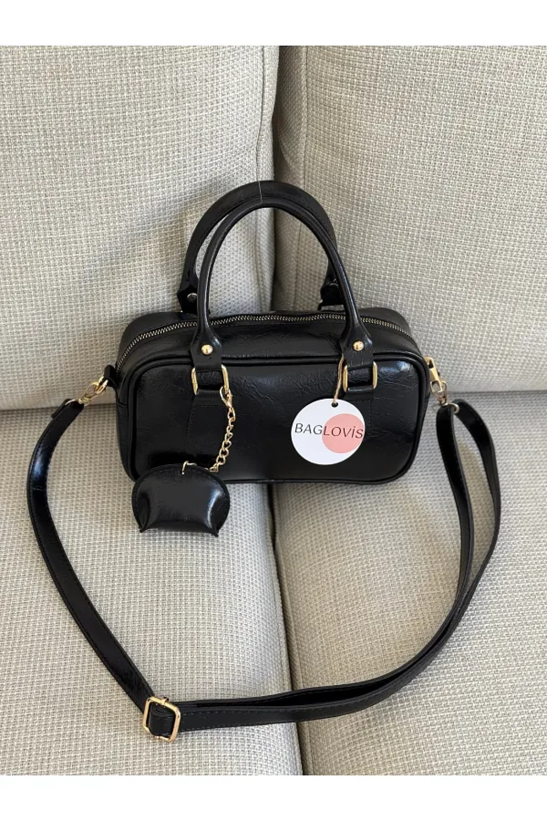 BAGLOVİS Small Black Women's Shoulder Bag with Tiny Leather Charm Detail