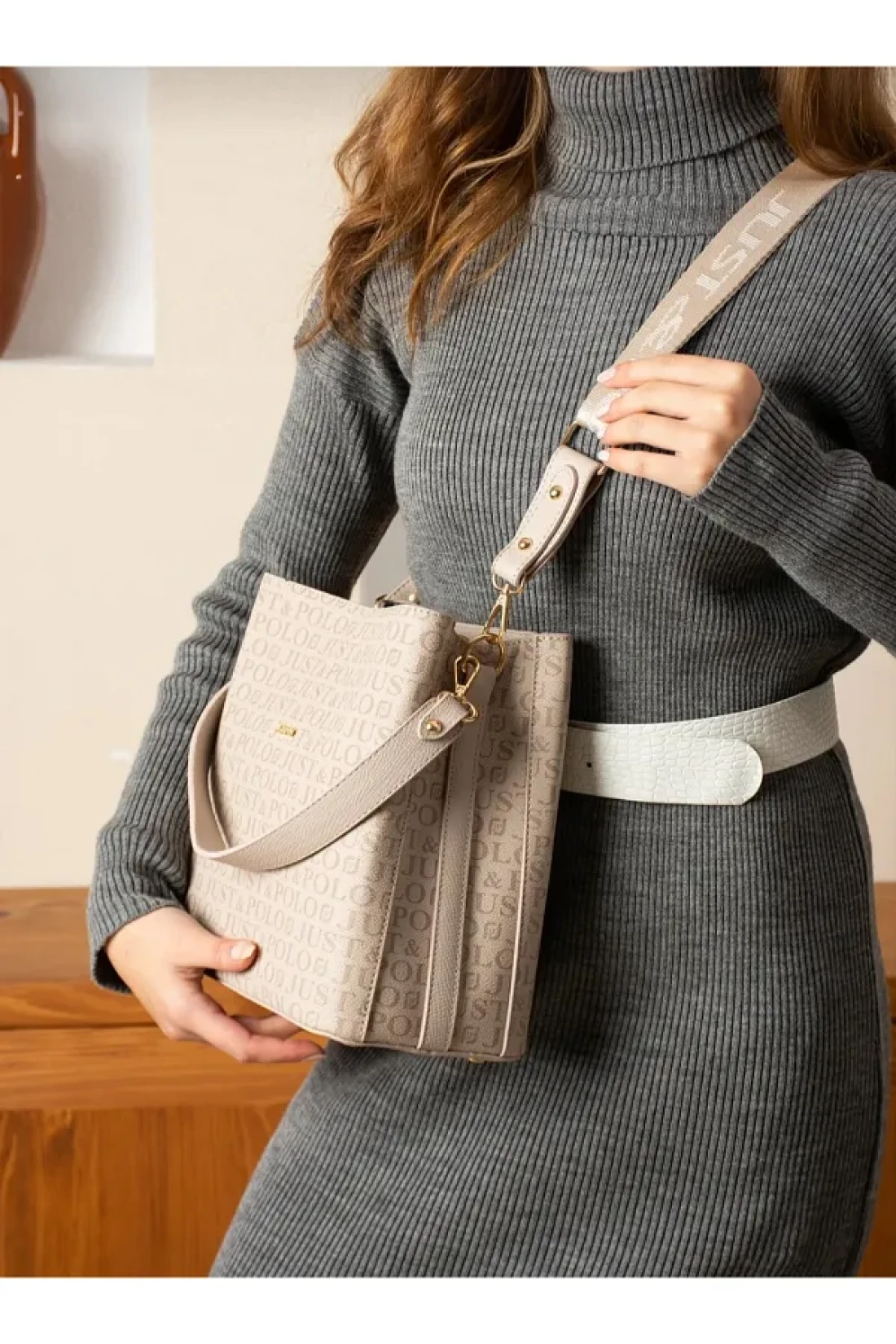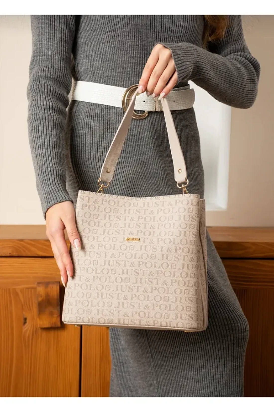 Just Polo Women's Stone Color 5 Compartment Two Straps Shoulder and Crossbody Bag