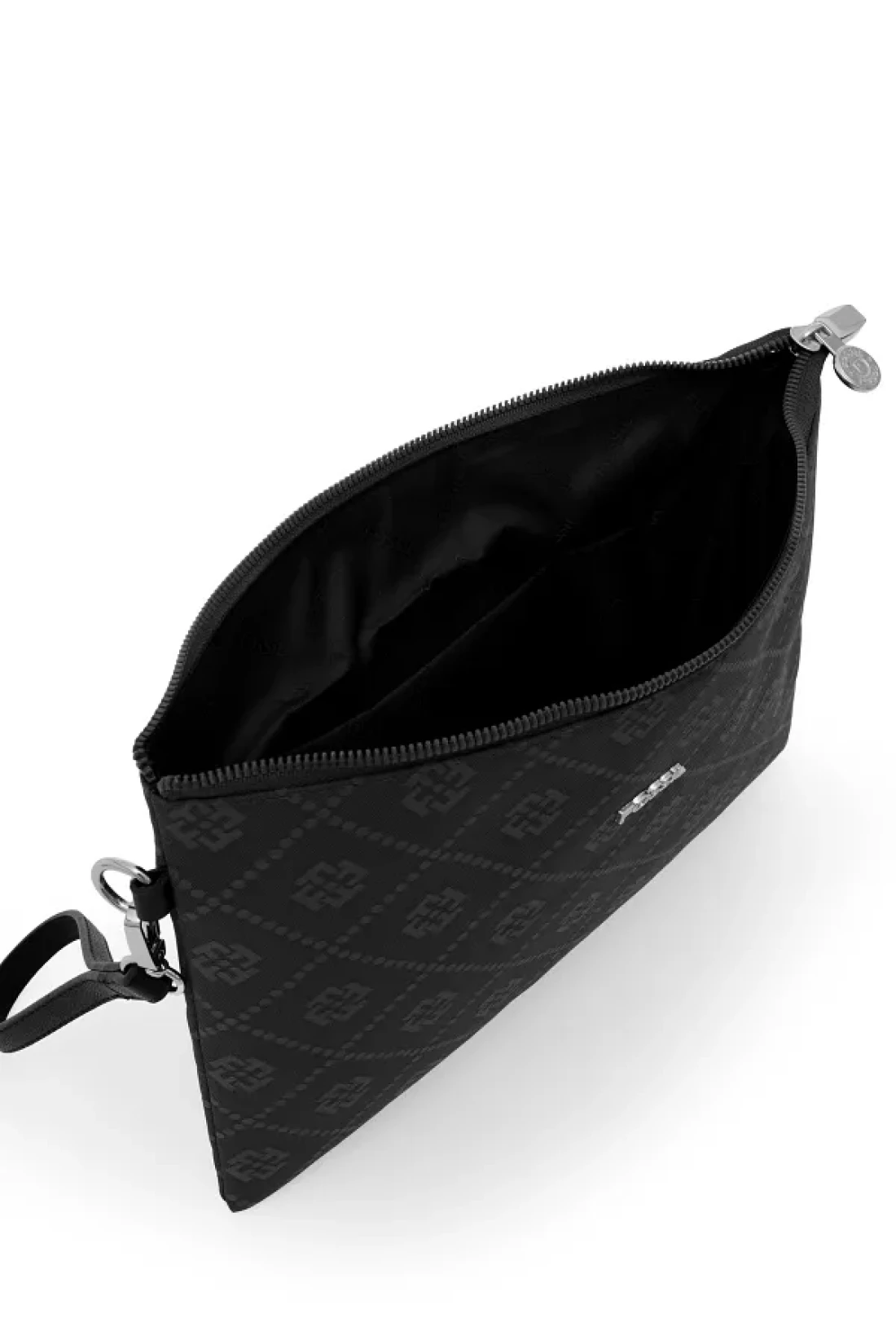 It has a zippered closure. Width x height x depth: 32x22x1 cm. It has 1 zippered pocket inside
