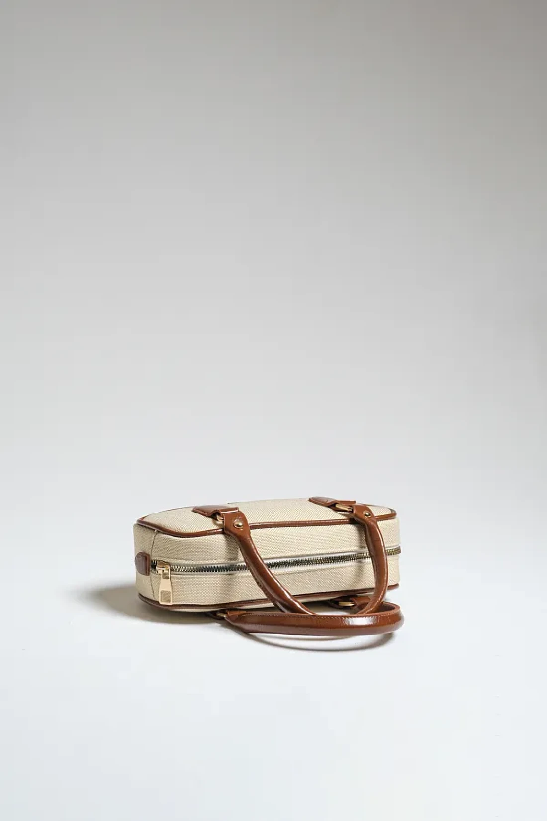 en 8cm. It is lining inside. You can use it as a long strap, whether in your hand, on your shoulder, or as a bag over your arm. Zipper gold color.