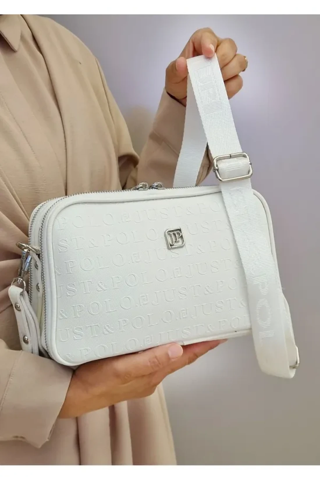 Just Polo Women's White Adjustable Long Strap Shoulder Bag