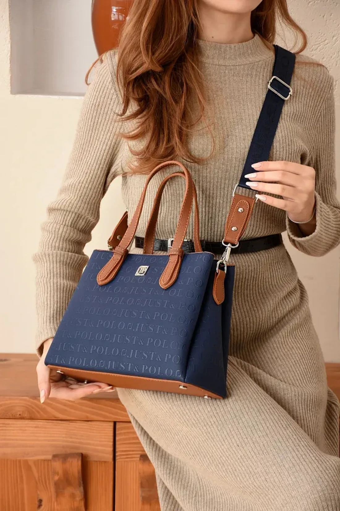 Just Polo Women's Medium Size Embossed Patterned Shopper Stylish Hand & Shoulder Bag Shoulder Bag
