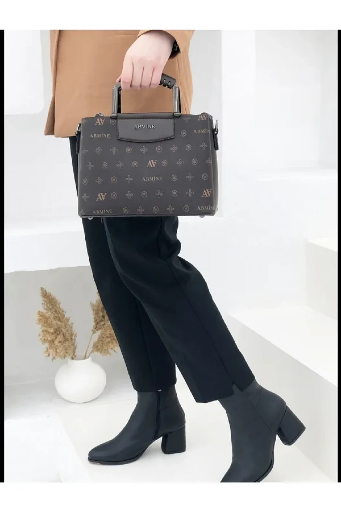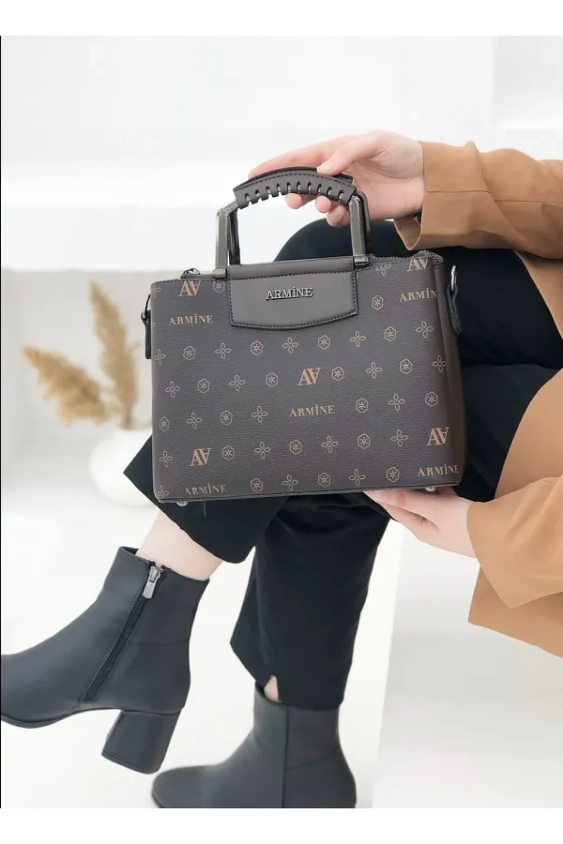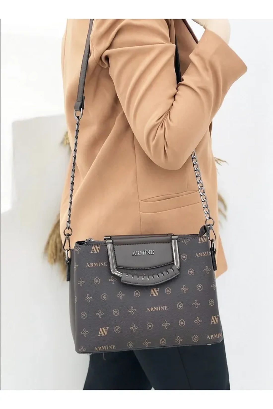 Armine Large Size Chain Hand and Shoulder Bag 223 Mink Printed