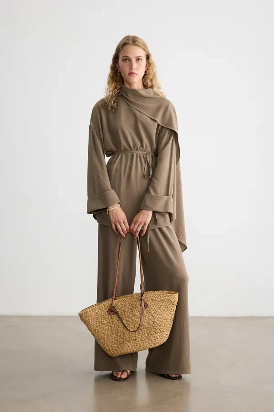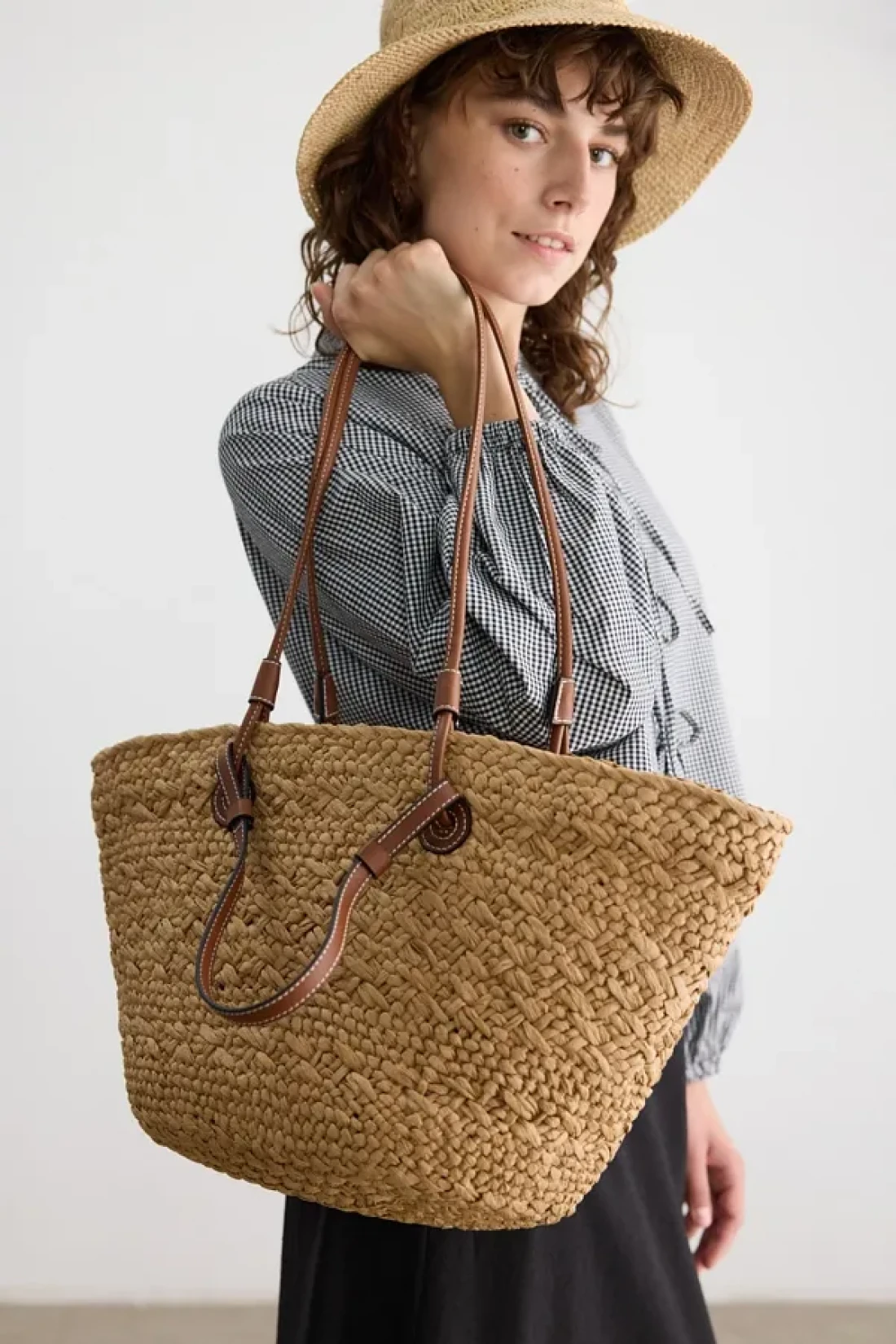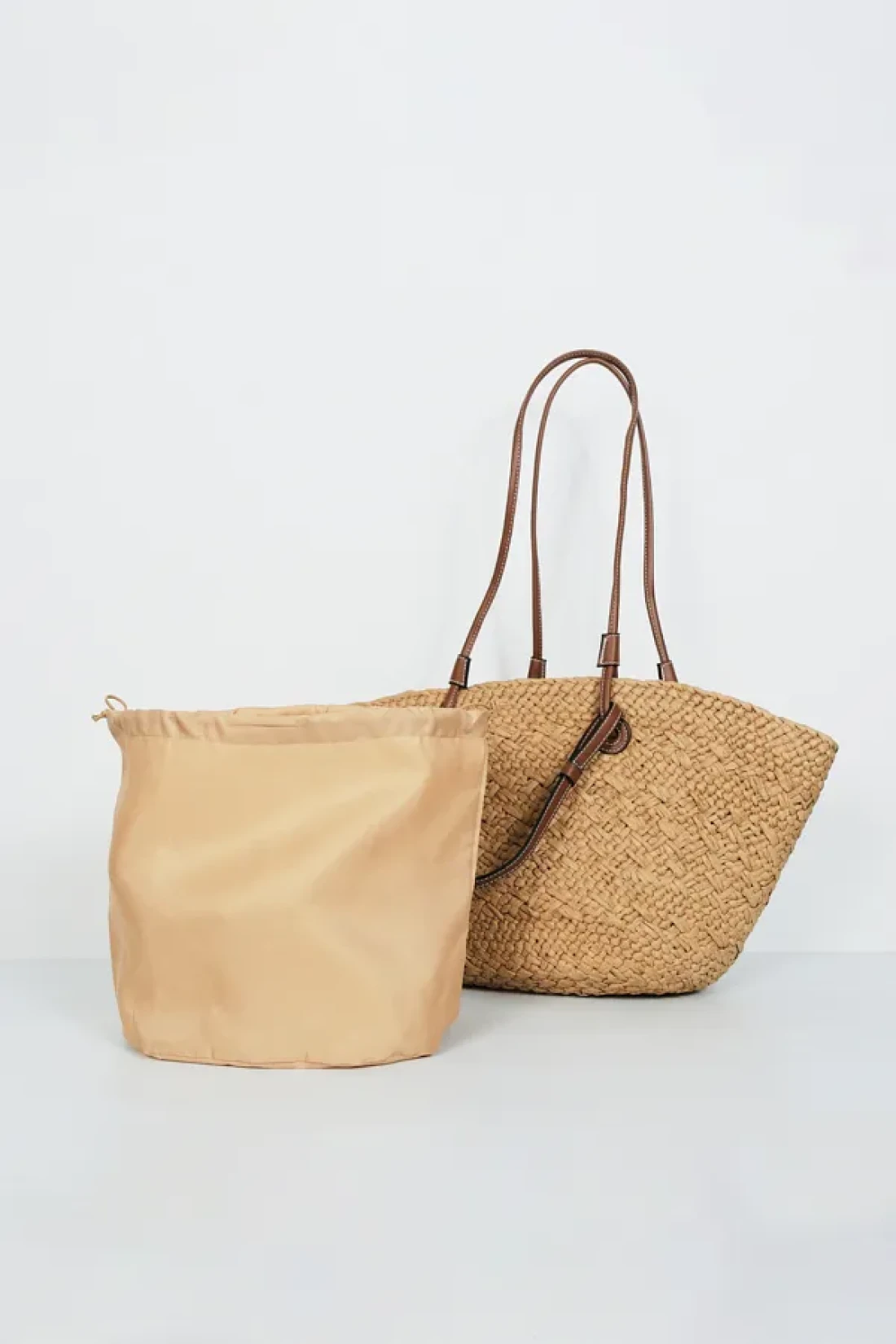 BE BLUE Natural Double Leather Handle Wicked Bag