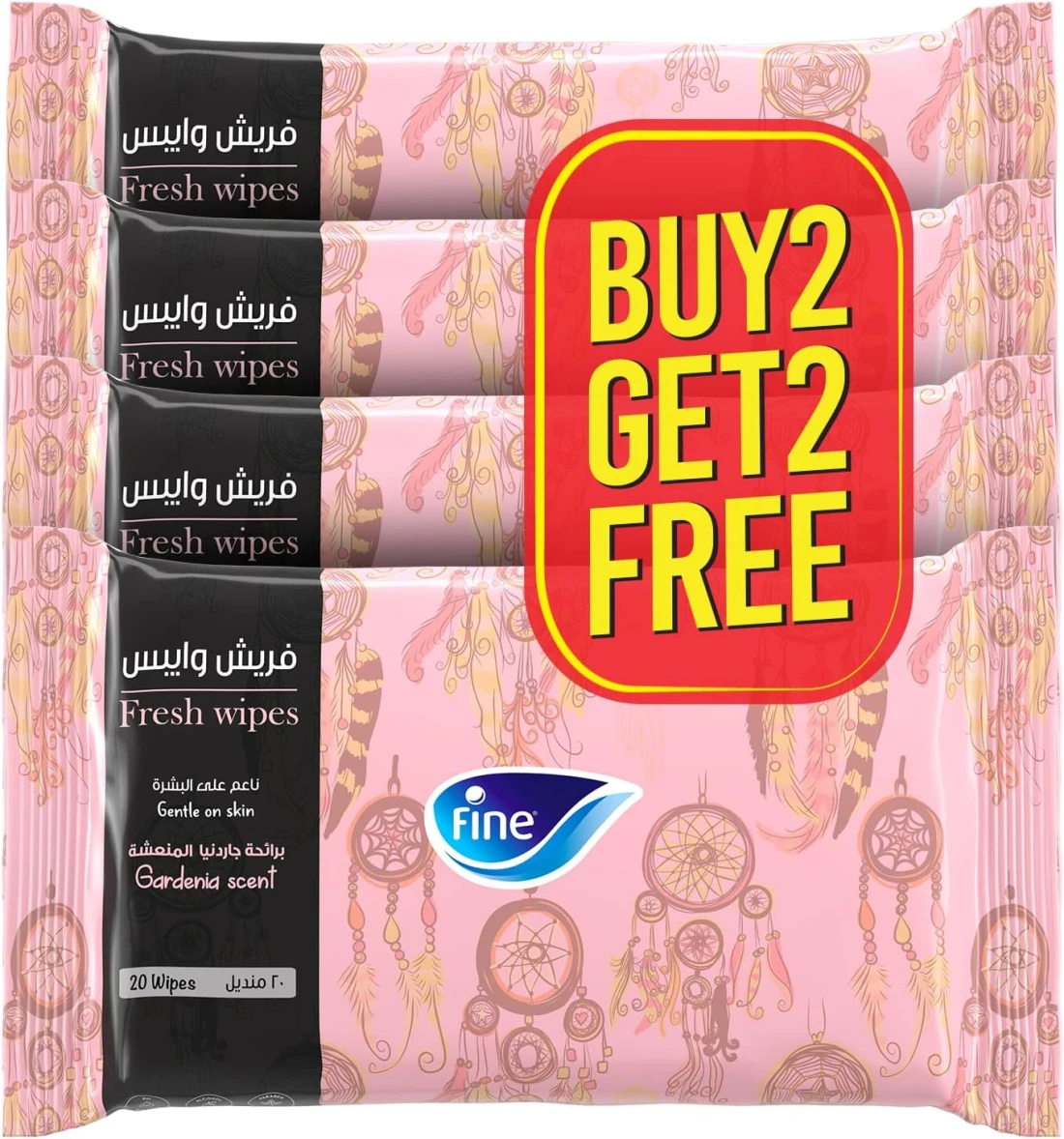 FINE ALL PURPOSE GARDENIA FRESH 20 WIPES 2 + 2 FREE