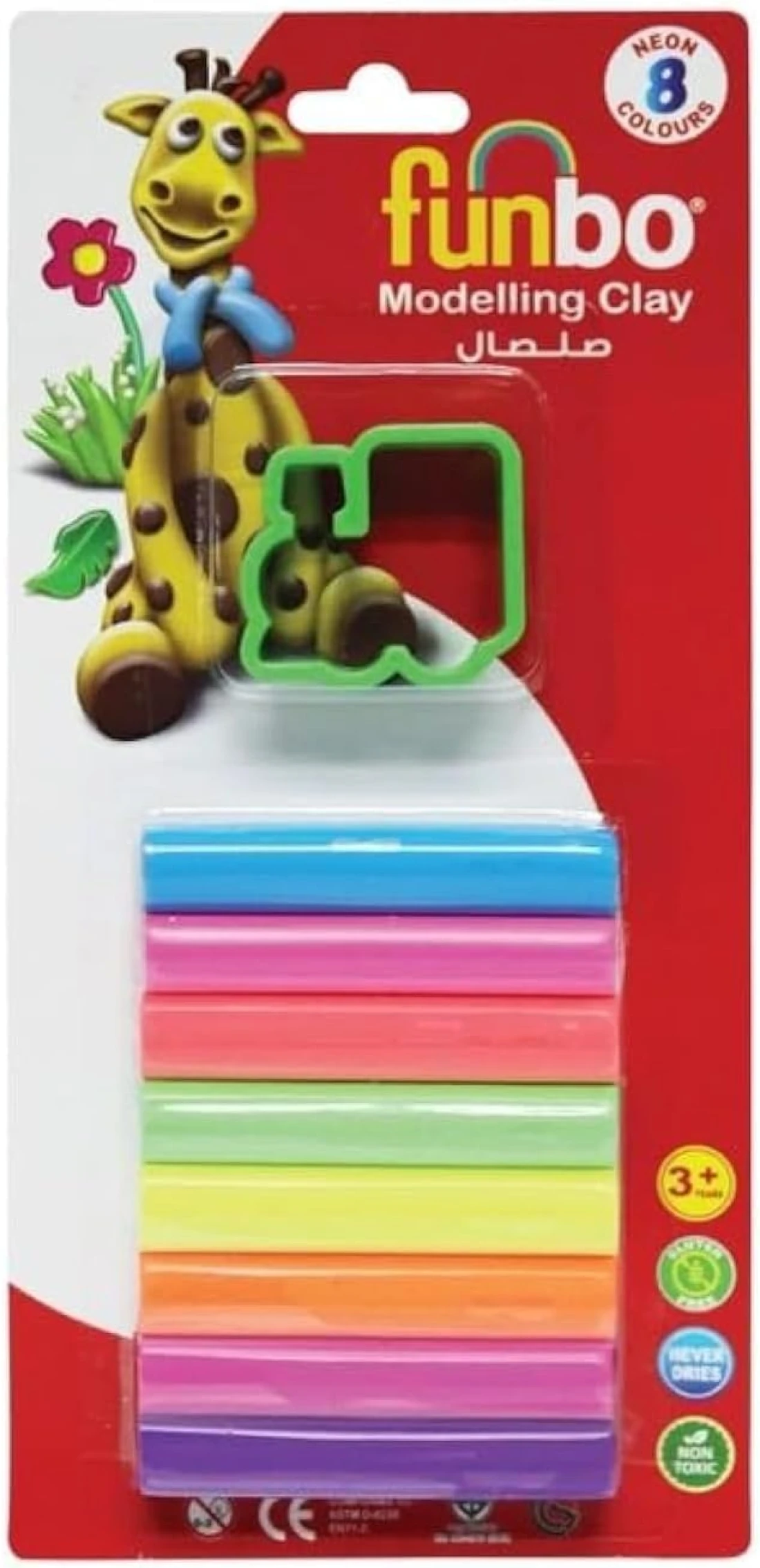 FUNBO M CLAY 100G 8 NEON CLRS PLUS 1 MOU