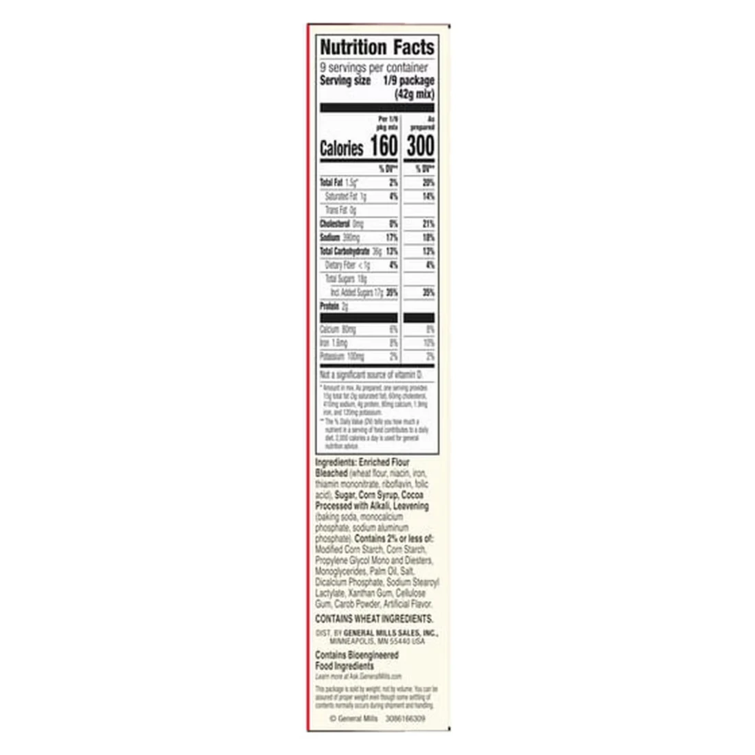 ingredients : Enriched Flour Bleached (Wheat Flour, Niacin, Iron, Thiamine Mononitrate, Riboflavin, Folic Acid), Sugar, Corn Syrup, Cocoa Processed With Alkali, Leavening (Baking Soda, Monocalcium Phosphate, Sodium Aluminium Phosphate). Contains 2% Or Less Of: Modified Corn Starch, Corn Starch, Propylene Glycol Mono And Diesters, Monoglycerides, Palm Oil, Salt, Dicalcium Phosphate, Sodium Stearoyl Lactylate, Xanthan Gum, Cellulose Gum, Carob Powder, Artificial Flavour