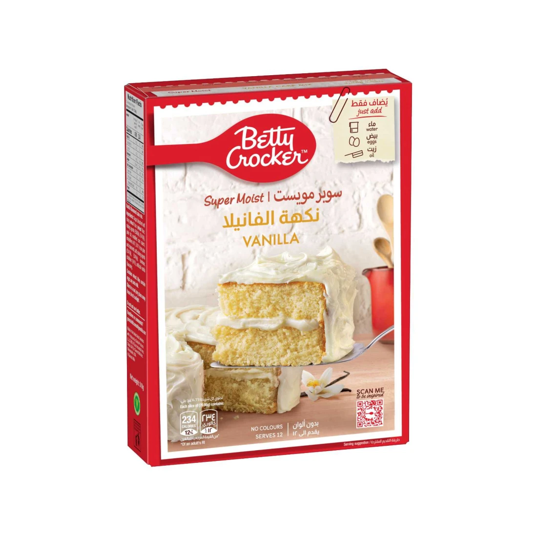 The Betty Crocker Super Moist Supreme Vanilla Cake Mix is a convenient and easy-to-use baking mix that allows you to create a deliciously moist and fluffy vanilla cake at home. with its simple recipe and premium-quality ingredients, this cake mix guarantees a perfect result every time. Just add water oil and eggs mix it all and bake to enjoy a classic vanilla cake that is perfect for any occasion. It can be customized with your favourite frosting fillings or decorations to create a personalized treat. Whether it's for a birthday a party or simply to satisfy your sweet tooth Betty Crocker Super Moist Supreme Vanilla Cake Mix is a reliable and tasty choice.