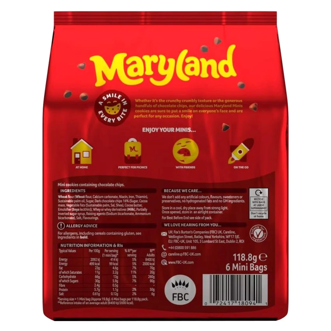 Maryland Minis Choco Chip Cookies Original are a delightful treat for cookie lovers. Weighing 118.8g, these bite-sized cookies are packed with rich, chocolate chips, offering a perfect balance of sweetness and crunch. Ideal for snacking on the go, sharing with friends, or enjoying with a cup of tea or coffee, Maryland Minis bring a classic cookie experience in a convenient size. The cookies are known for their signature crispy texture and delicious flavour, making them a popular choice for both kids and adults alike. Enjoy the classic taste of Maryland Minis anytime, anywhere!