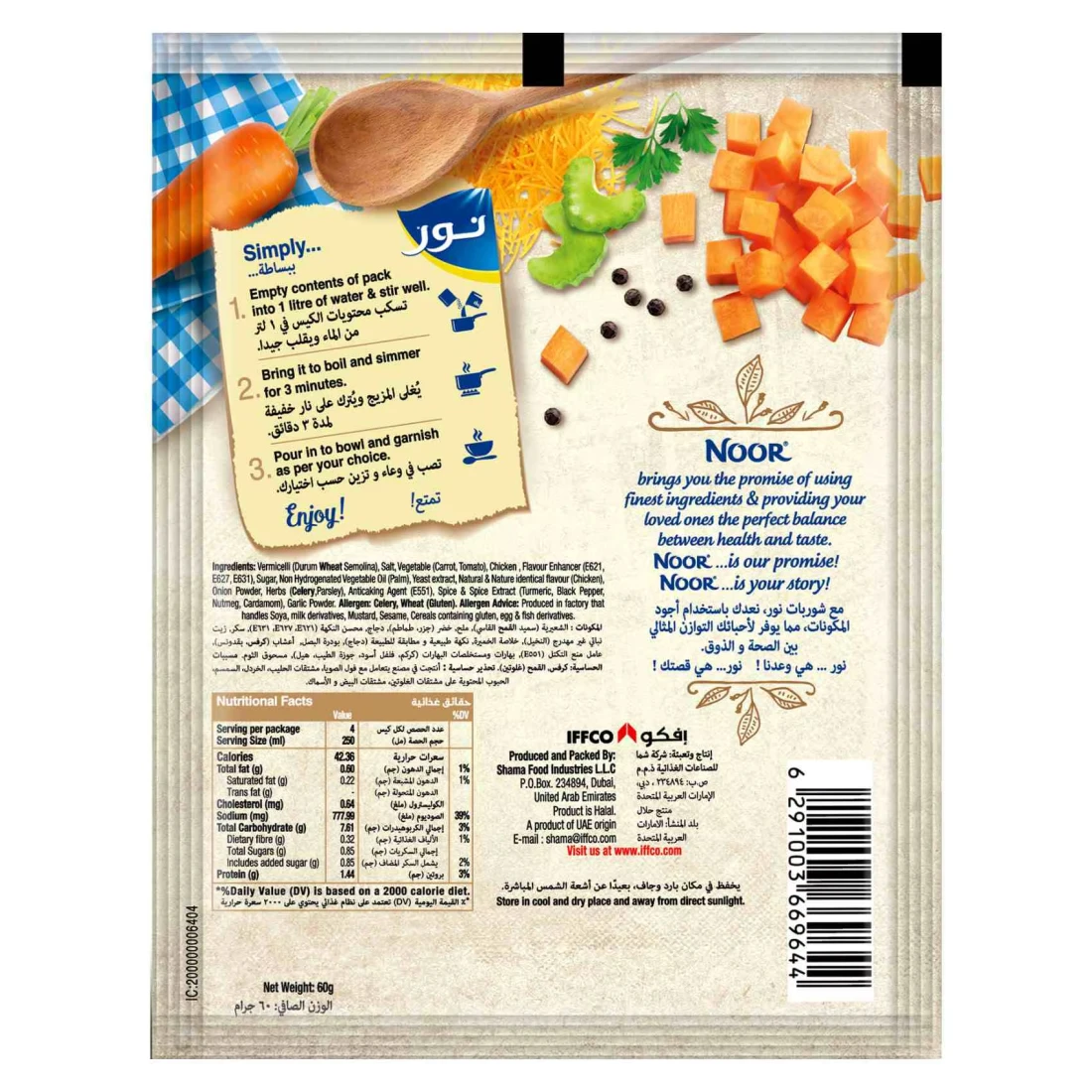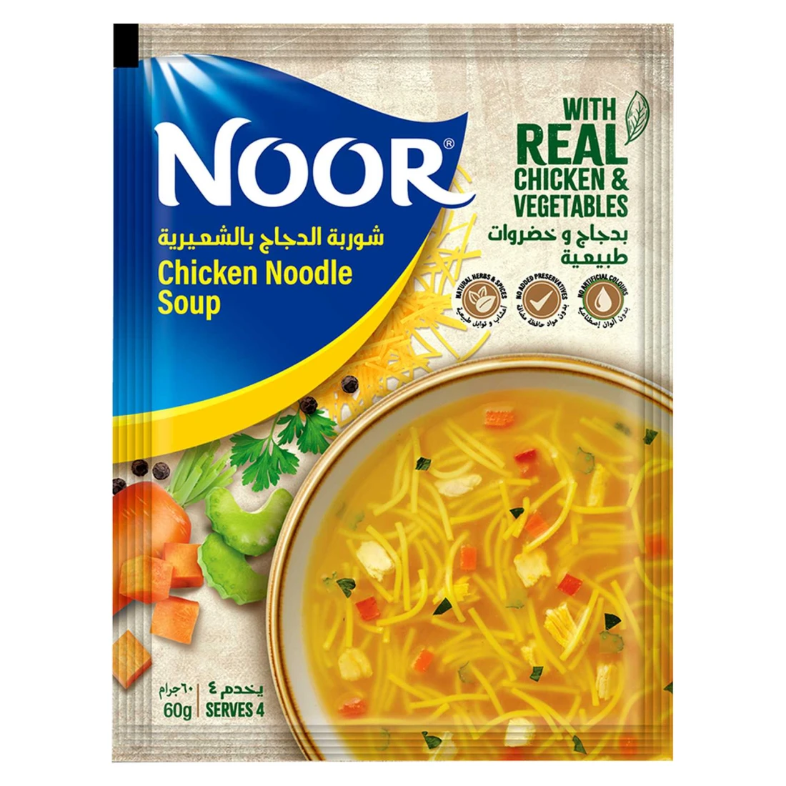 Noor Chicken Noodle Soup 60g is a delicious and convenient instant soup that is ready to eat in minutes. Made with real chicken and high-quality noodles, it is a comforting and flavourful option for a quick meal or snack. Perfect for those looking for a warm and satisfying soup on-the-go.