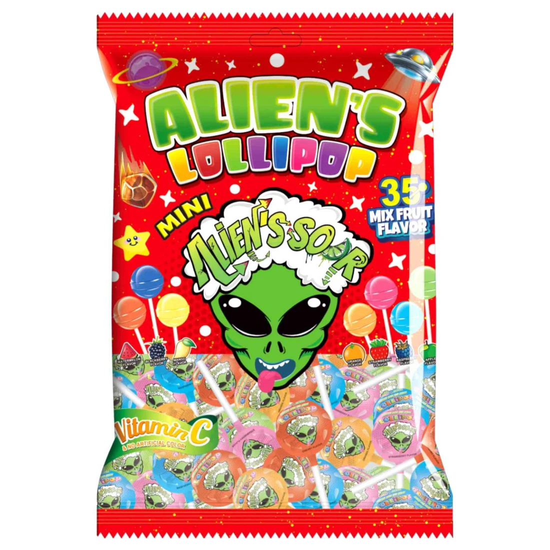 Alien's Sour 35 Mix Fruit Flavour Vitamin C Mini Lollipop, 210g