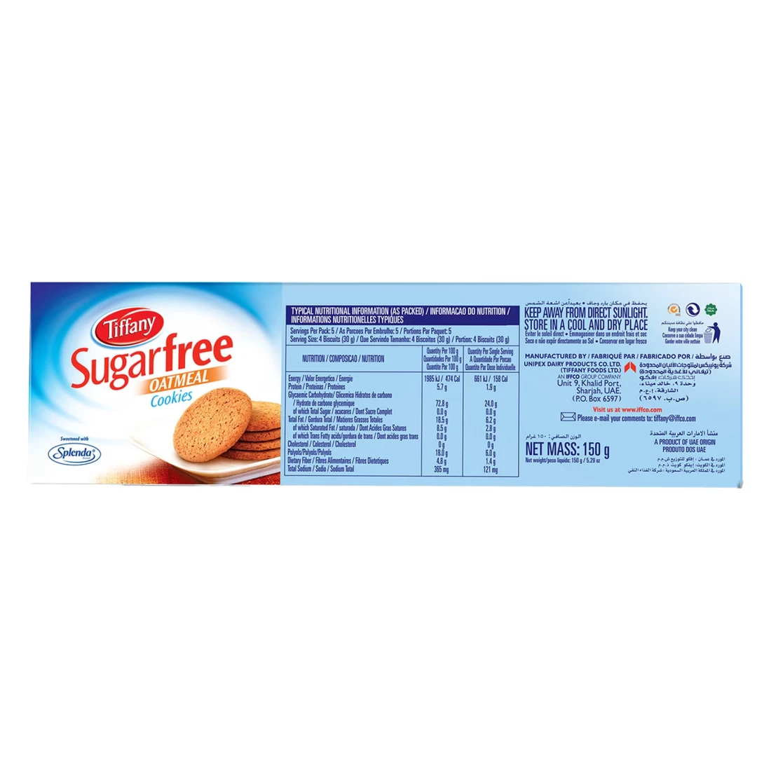 - Deliciously crafted Tiffany Sugar Free Oatmeal Cookies, packed in a convenient 150g resealable bag for freshness