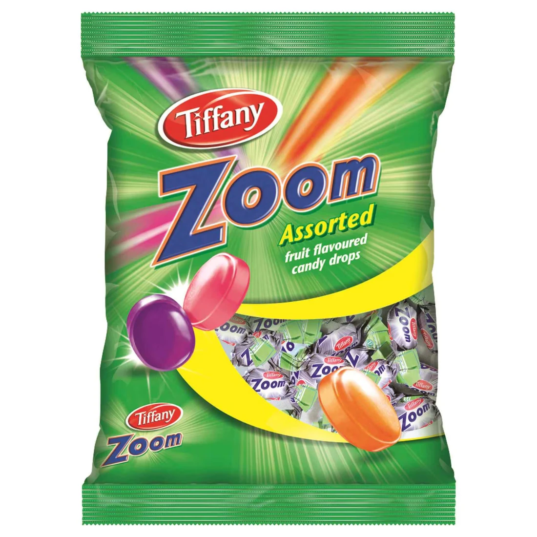 Tiffany Zoom Assorted Candy is a delicious mix of different fruity and chewy candies. This bag includes a variety of flavours and textures from soft and gummy to hard and tangy. Whether you enjoy sour sweets or sweet and creamy candies there is something for everyone in this assortment. Perfect for parties movie nights or just a sweet indulgence Tiffany Zoom Assorted Candy is sure to satisfy your taste buds and leave you craving more.