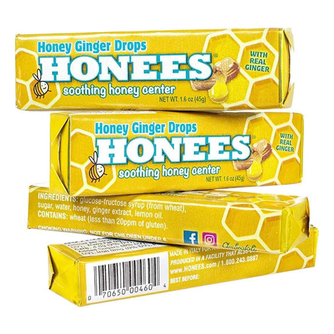 Honees Honey Ginger Candy Cough Drops are a soothing and natural remedy for coughs and sore throats. Made with real honey and ginger, these cough drops provide relief while also offering a delicious taste. Each package contains 45g of individually wrapped drops.