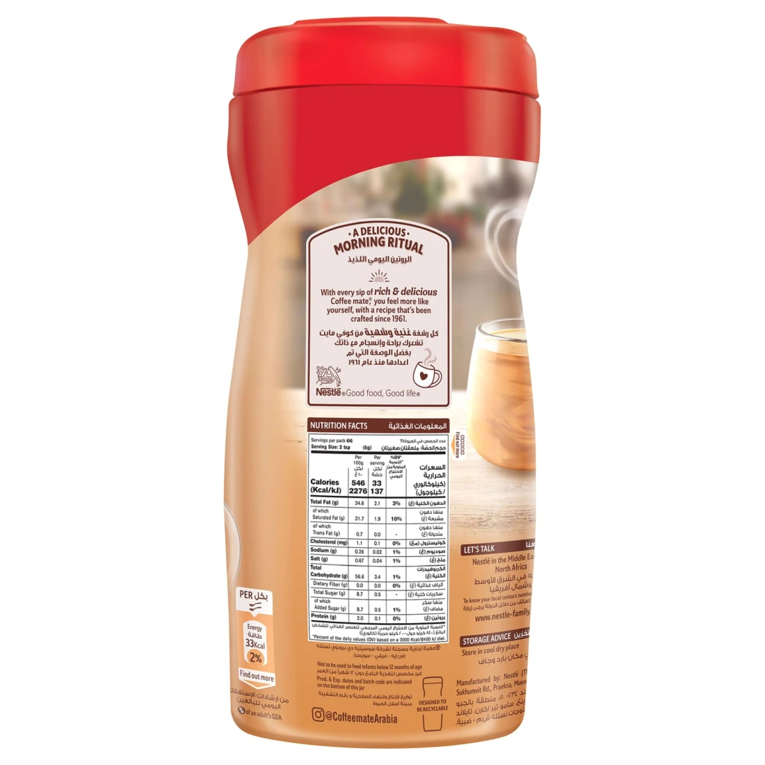 Nestle Coffeemate Original Coffee Creamer offers a smooth and creamy flavour that enhances your coffee experience. With a fat content of 18%, it provides a rich texture without the need for dairy. The product comes in a convenient 400g pack, making it easy to store and use. Ideal for those seeking a non-dairy alternative, this creamer is perfect for adding a touch of indulgence to your daily cup of coffee.