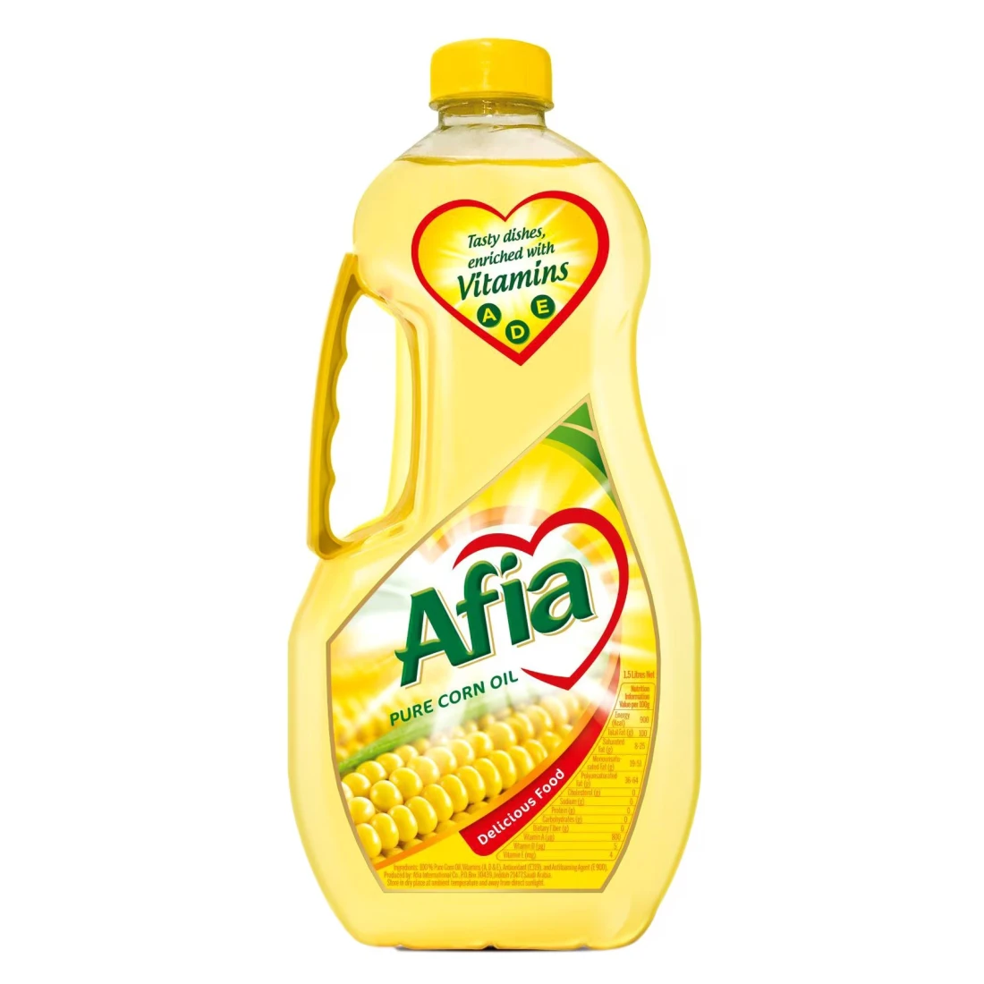 - Afia Pure Corn Oil is packaged to ensure freshness and convenience for everyday use