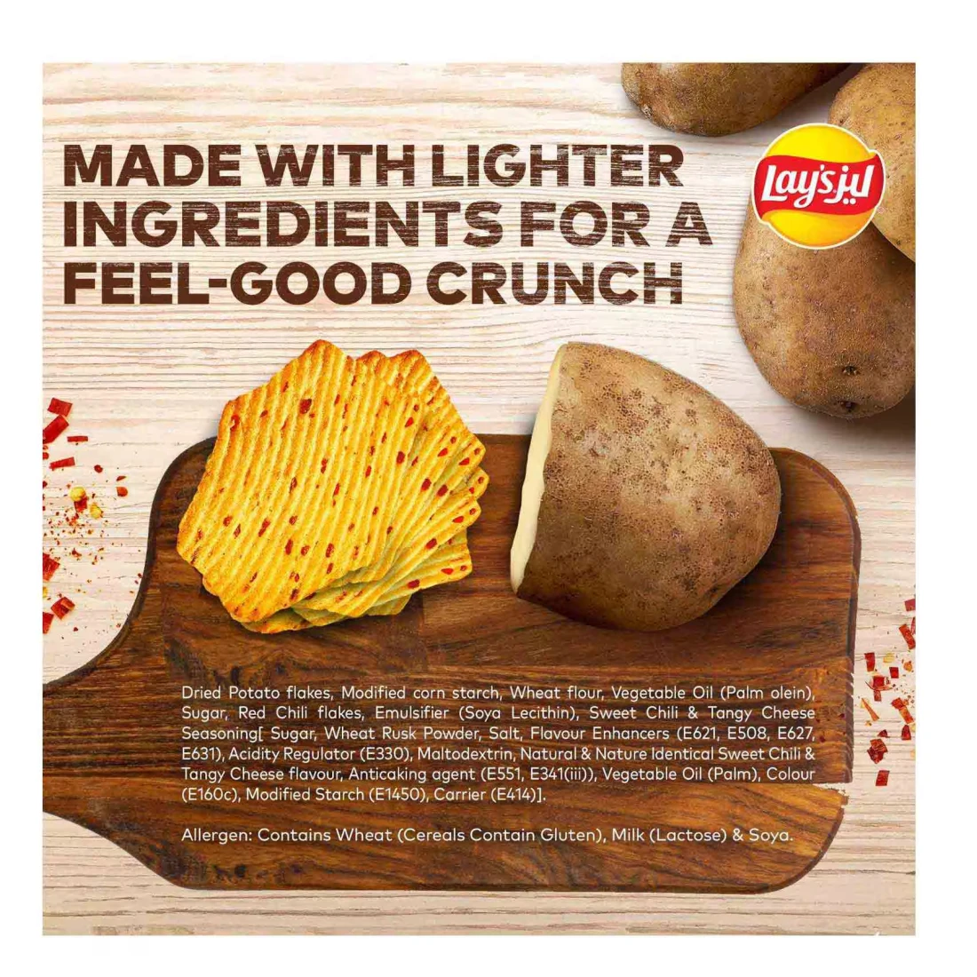 Baked with 60% less fat and 20% less sodium than your regular potato chips, Lay's Forno Fusion offers an irresistible lighter snacking experience. Lays Forno Potato Chips are oven baked and made with carefully selected flavours and ingredients. Indulge in the exceptional fusion of Sweet Chili & Tangy Cheese. Lay's Forno Fusion products are loads of fun and better for you. Add a tangy and incredible flavour to your gatherings. Joy is best shared, crunch louder and enjoy your every moment you spend with your loved ones. Grab a bag of your favourite flavoured potato chips NOW! Celebrations and good times happen with Lay's!