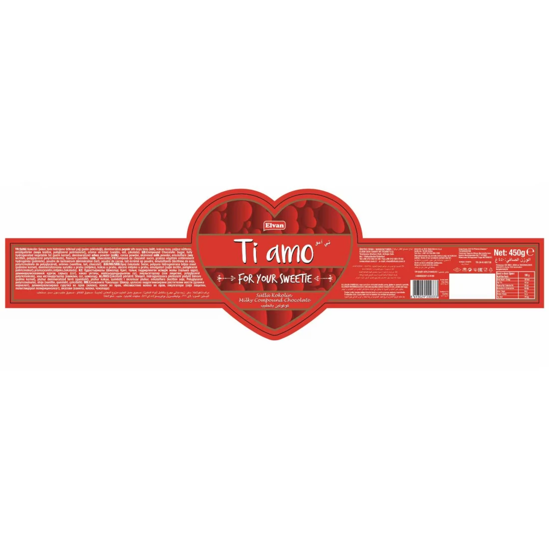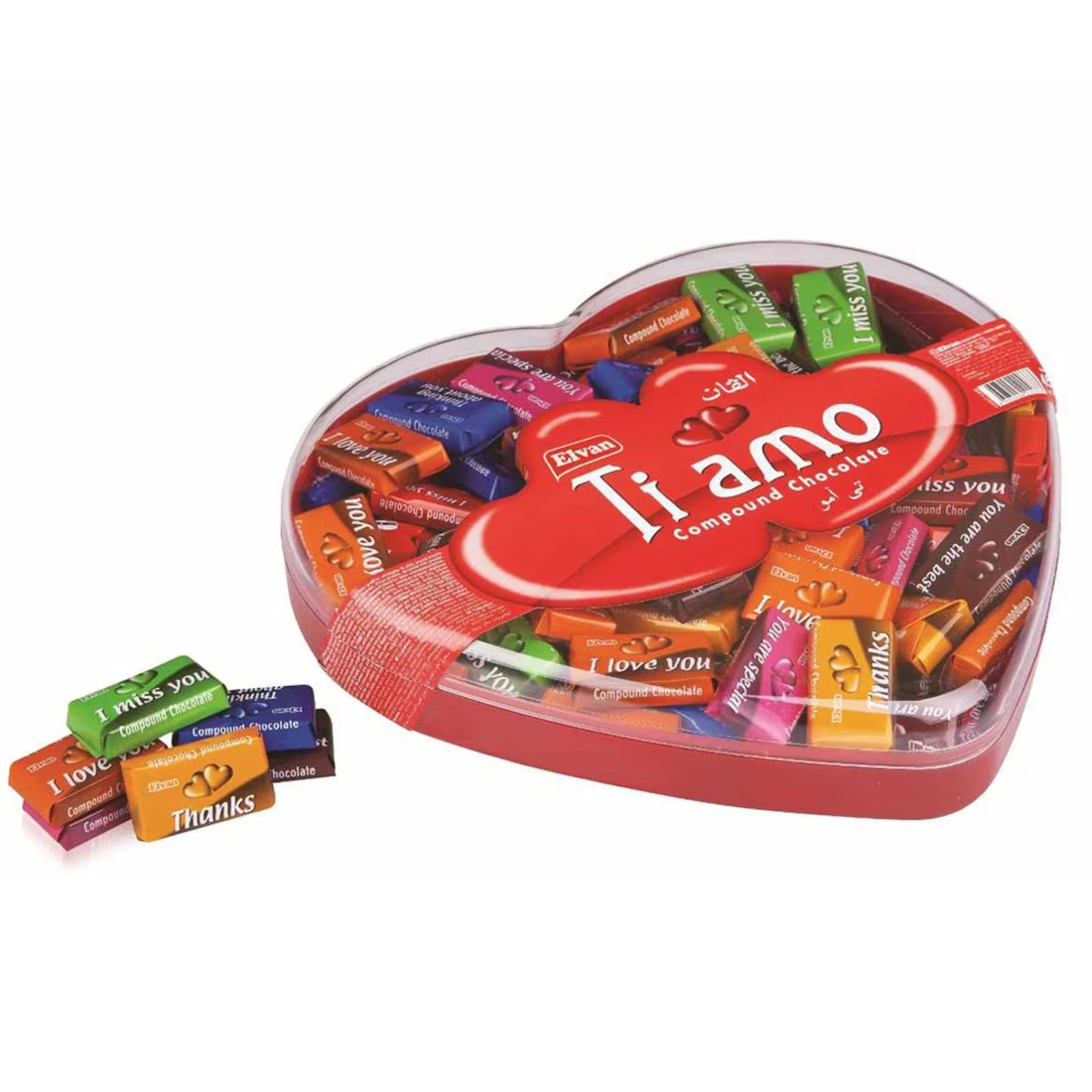 Elvan Ti Amo Chocolate Heart Shape Box is a delightful assortment of chocolates, perfect for expressing love and affection. The box contains a variety of rich and creamy flavours that cater to different taste preferences, making it an ideal gift for special occasions. With a total weight of 450g, it offers a generous selection for sharing or indulging. The fat content is balanced, ensuring a satisfying treat without being overly indulgent. Its charming heart-shaped packaging adds a romantic touch, making it a great choice for anniversaries, Valentine's Day, or simply to brighten someone's day.