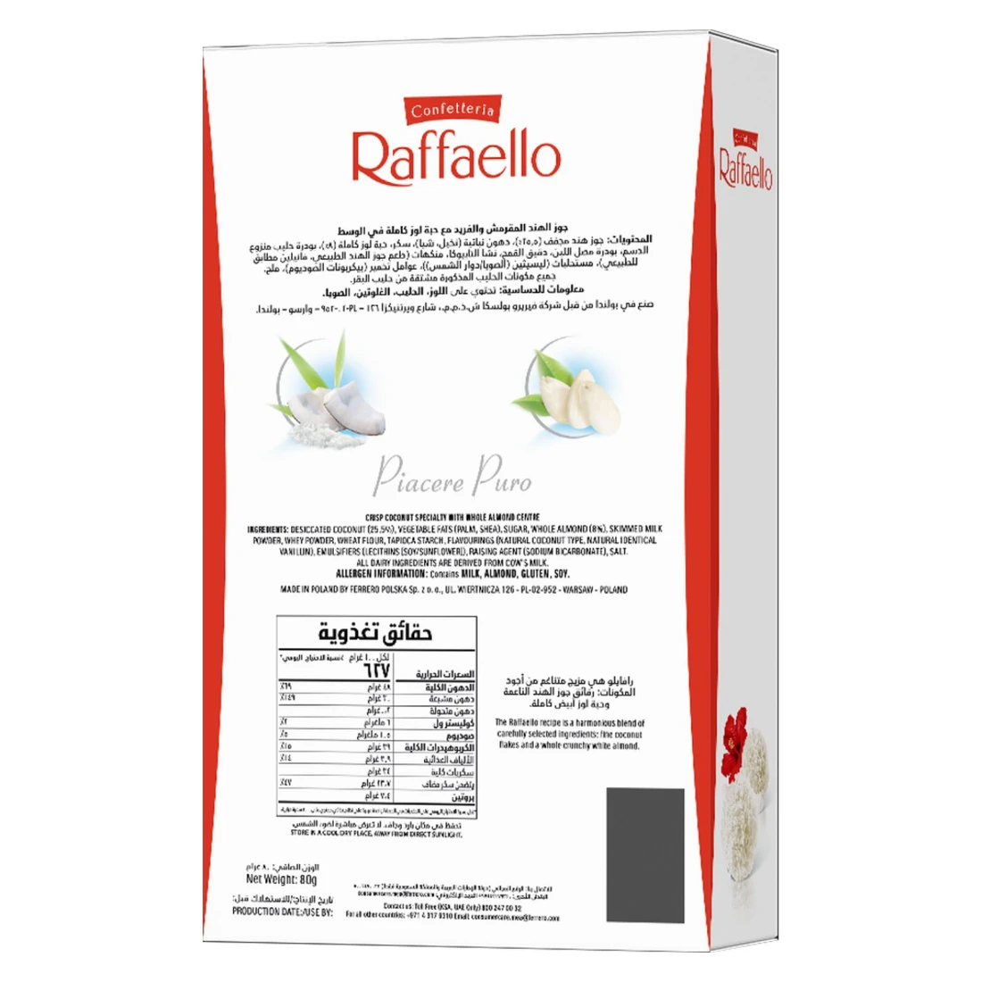 - Contains 80g of individually wrapped Raffaello pieces
