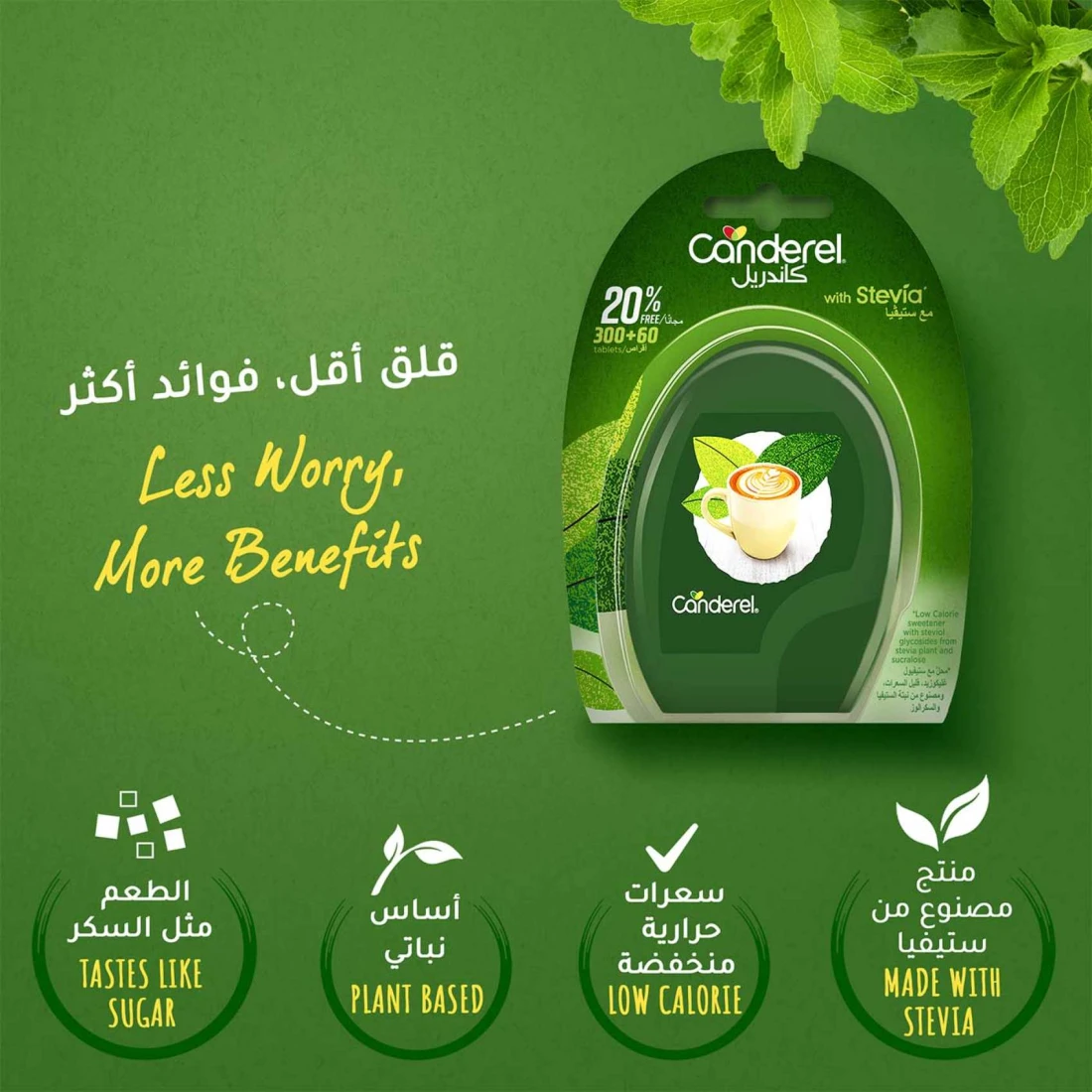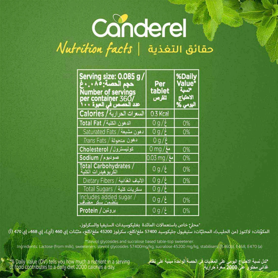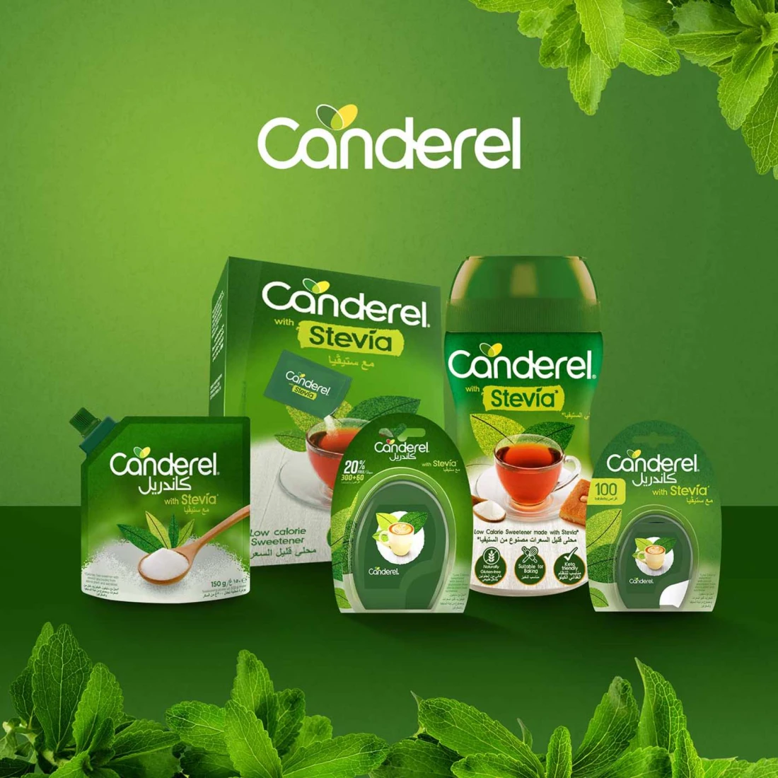 - Canderel Sweetener with Stevia is low-calorie, ideal for those seeking to reduce calorie consumption