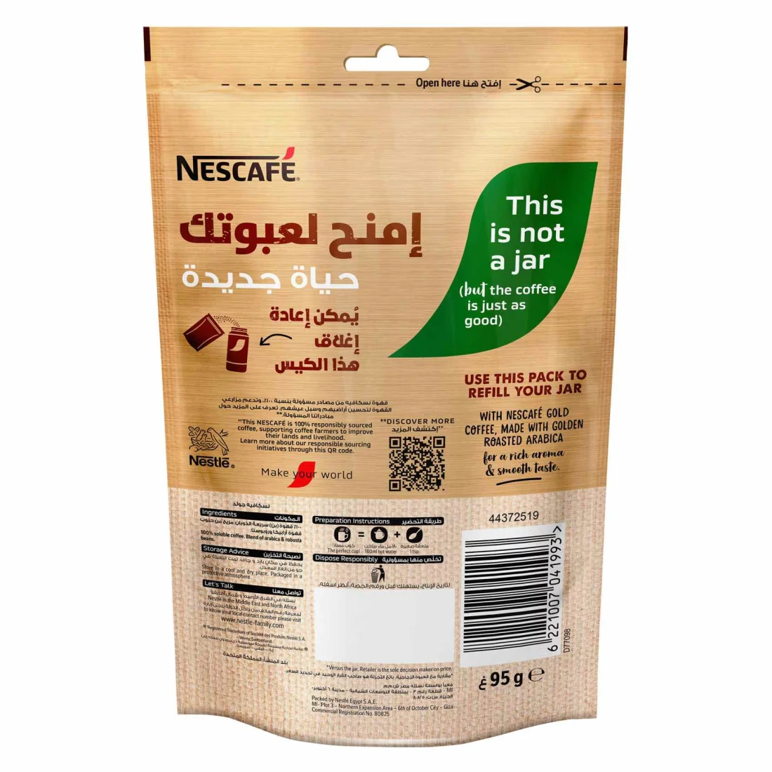 Nescafe Gold Coffee Refillable Pack offers a rich and smooth flavour, perfect for coffee enthusiasts seeking a premium experience. This sugar-free option allows you to enjoy the authentic taste of coffee without added sweetness. The pack size is convenient at 95g, making it easy to store and refill your favourite coffee container. With its carefully selected coffee beans, Nescafe Gold ensures a high-quality brew every time, providing a delightful coffee experience in the comfort of your home.