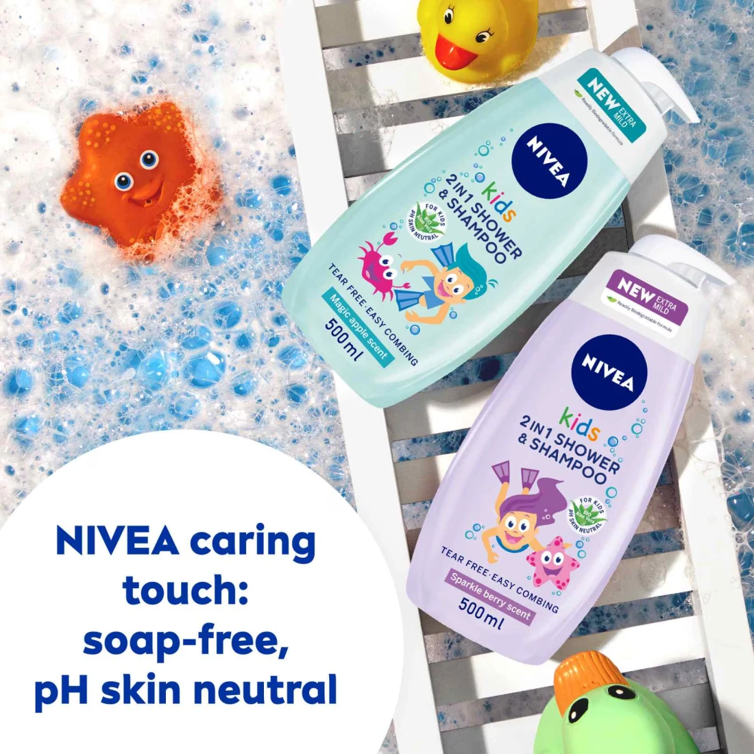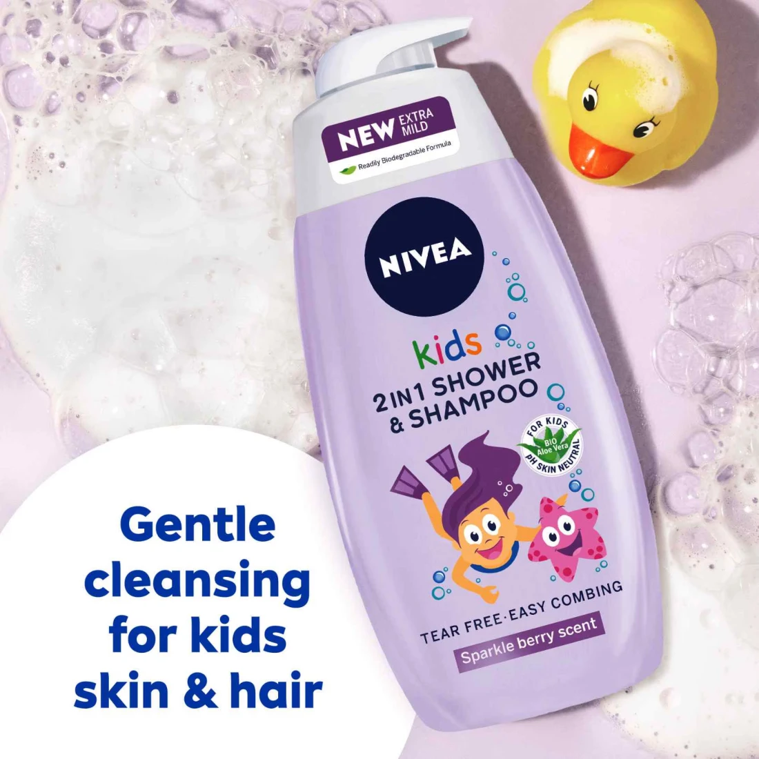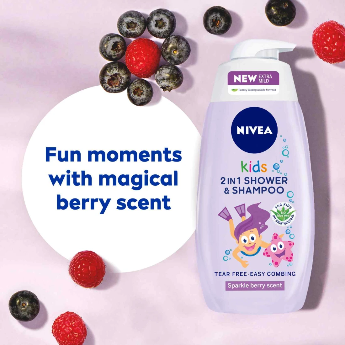 NIVEA Kids 2-In-1 Shower And Shampoo Sparkle Berry Scent Purple 250ml