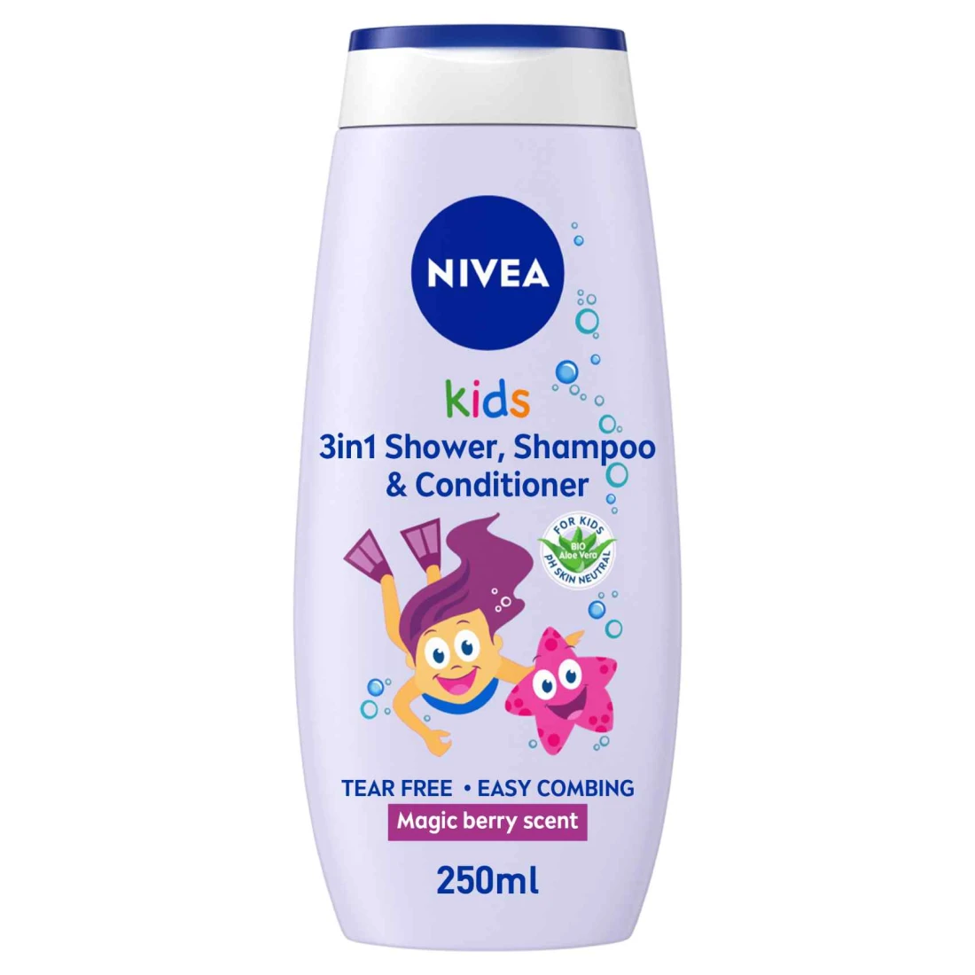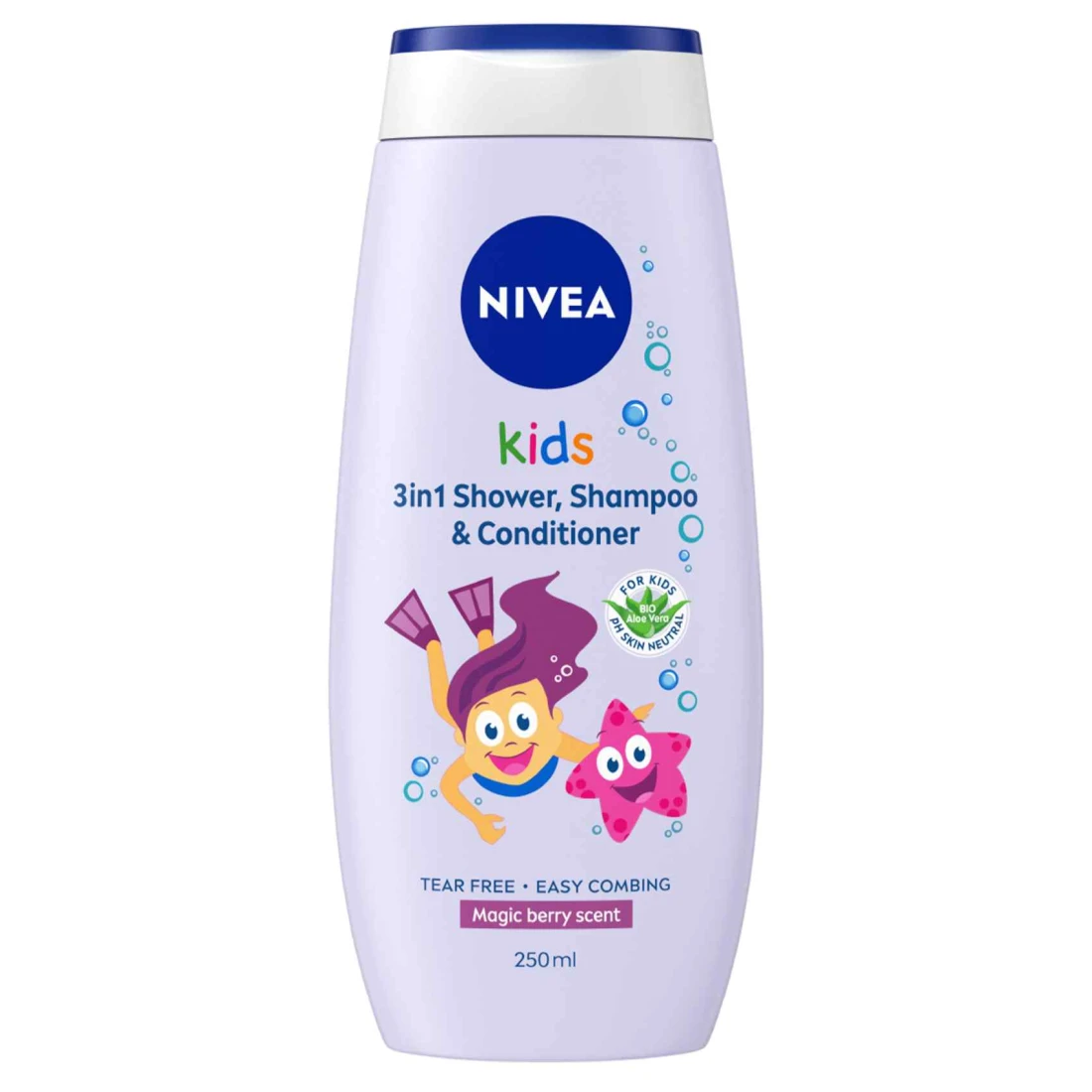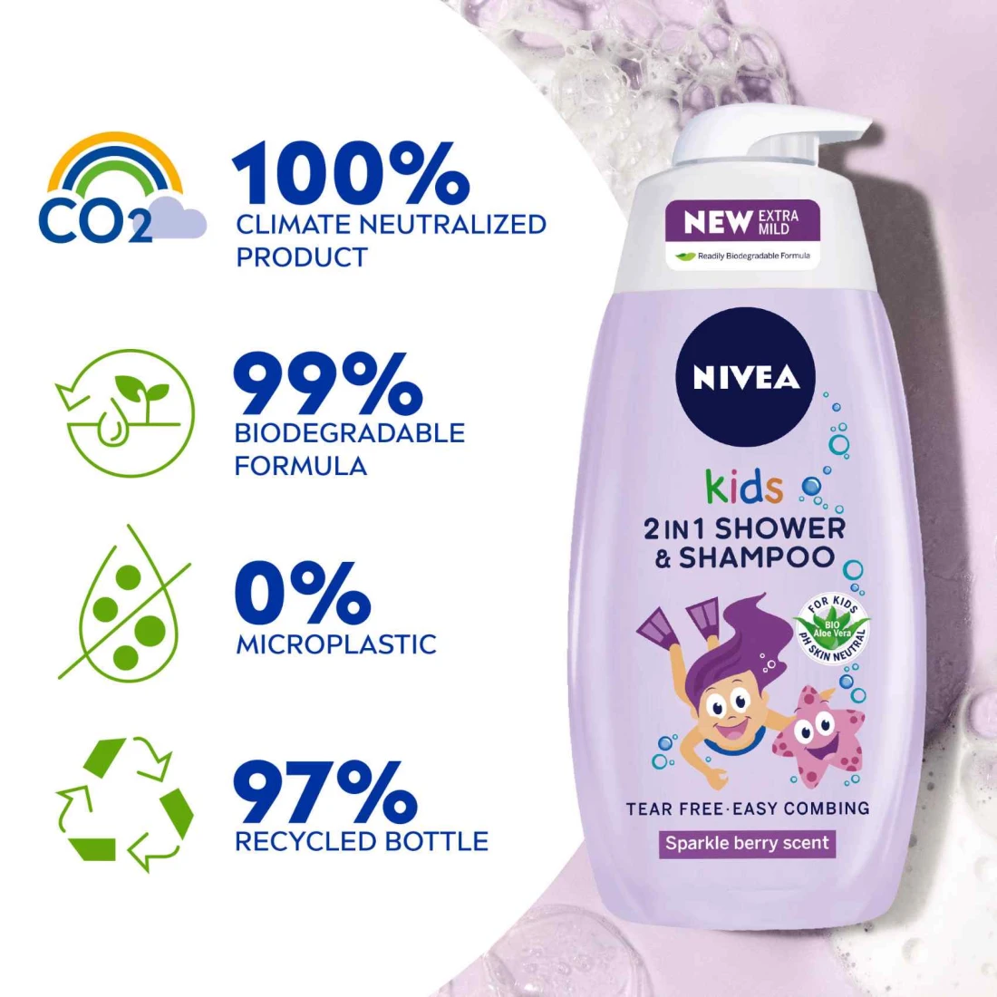 NIVEA Kids 2-In-1 Shower And Shampoo Sparkle Berry Scent Purple 250ml