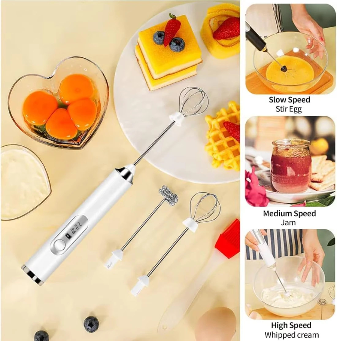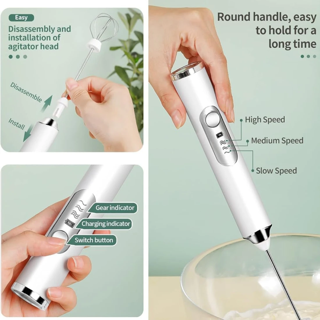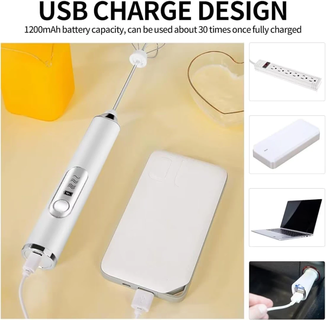 • 💪 USB rechargeable milk frother & 3-Speed Settings: Convenient USB charging ensures your frother wand rechargeable is always ready to use. Choose from three speed settings to get the perfect froth for your favorite beverages. Versatile mixing wand From frothing milk frother handheld for lattes to beating eggs for fluffy omelets, this mixer cup handles various tasks effortlessly