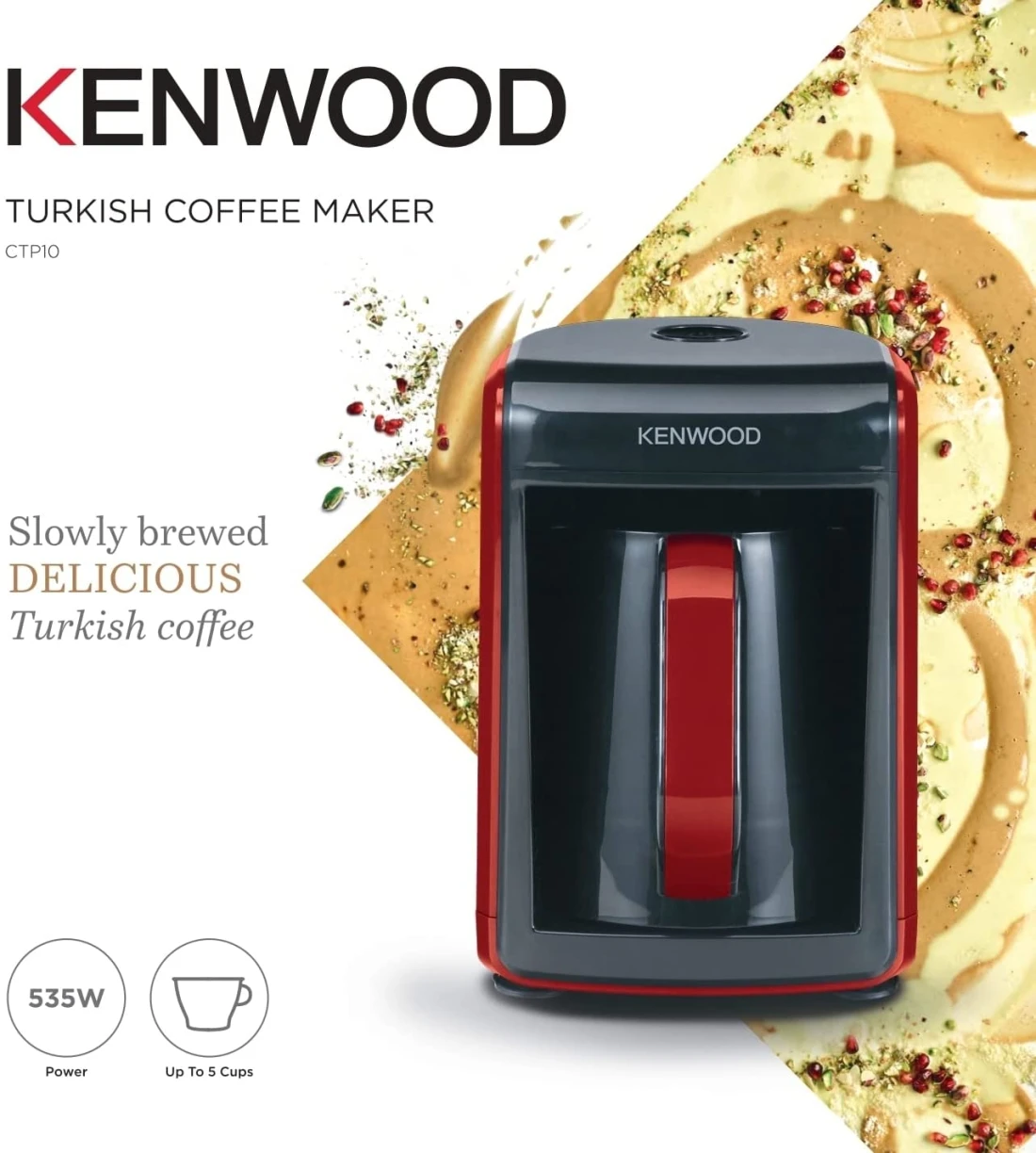 Kenwood Turkish Coffee Maker Up To 5 Cups Turkish Coffee Machine for Slowly Brewed DELICIOUS Turkish Coffee 535W CTP10.000BR Black/Red, Red/Black