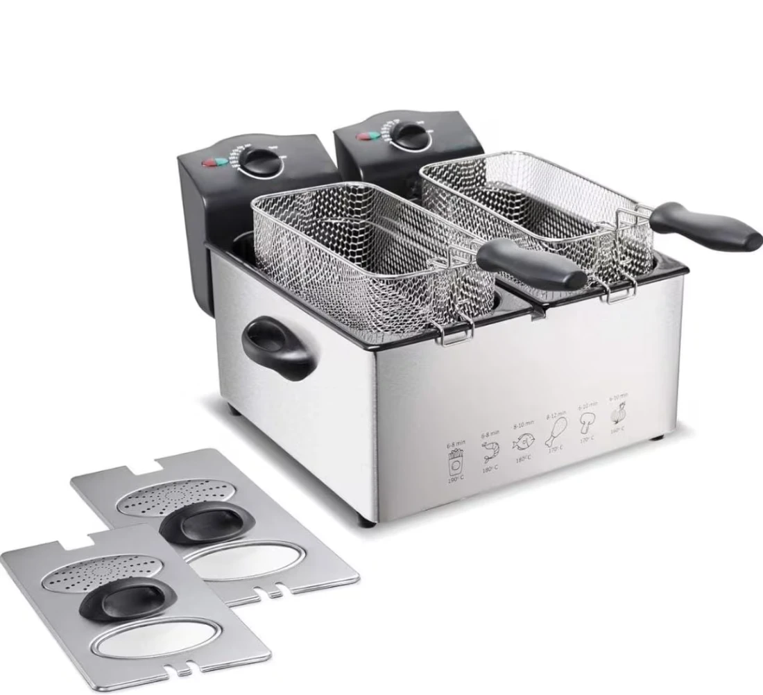 • 6L Large Capacity with Dual Slots – Designed for high-volume frying with two separate frying zones and baskets, perfect for home or commercial use.