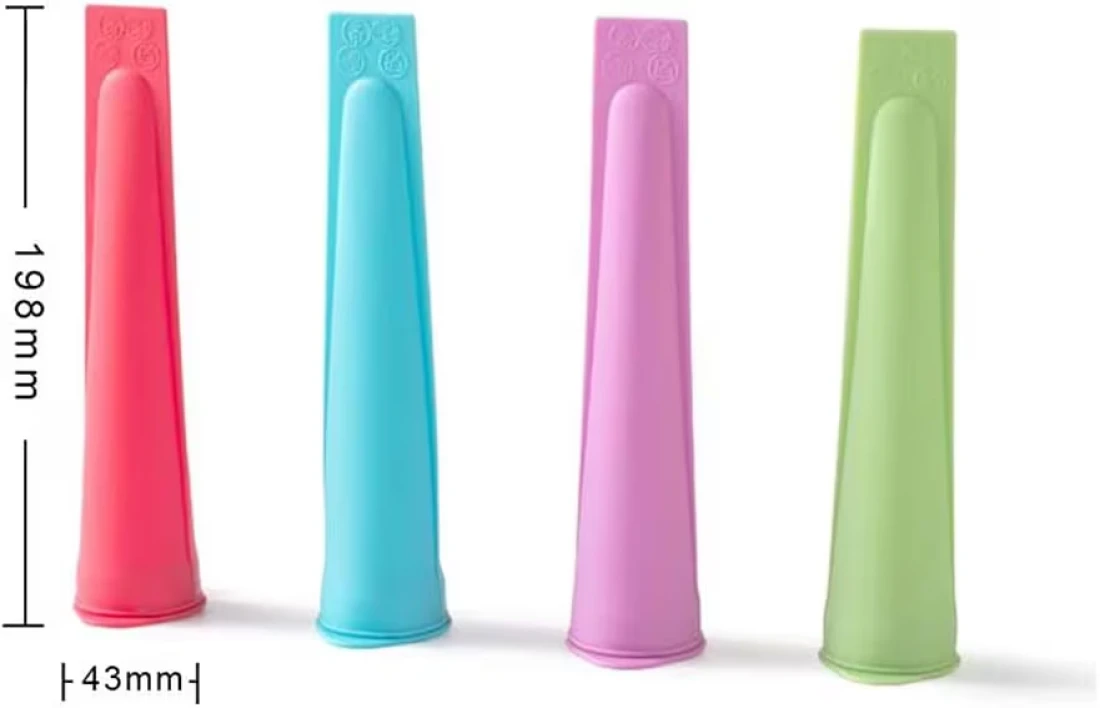 Silicone Ice Cream Maker with Attached Lids, Freezer Tube, Frozen Ice Lolly Forms Reusable Dishwasher Safe Easy Clean No Mess, for Your Kids, Multi Color Set of 4
