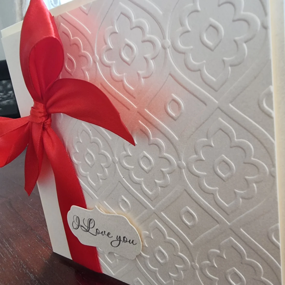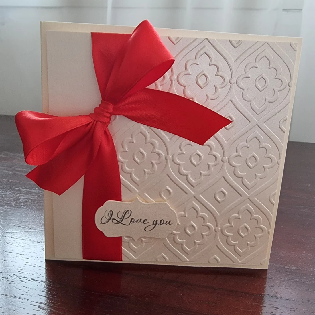 Embossed Valentines / Anniversary card with Red satin ribbon