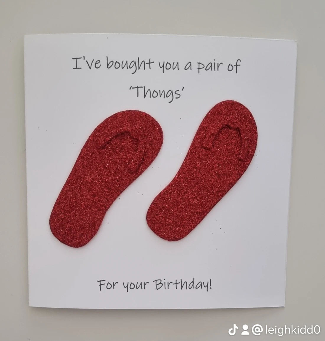 Sturdy card, with foam flip flops. The card can be personalised upon request. This must ben done when ordering or the card will be sent as seen in the picture